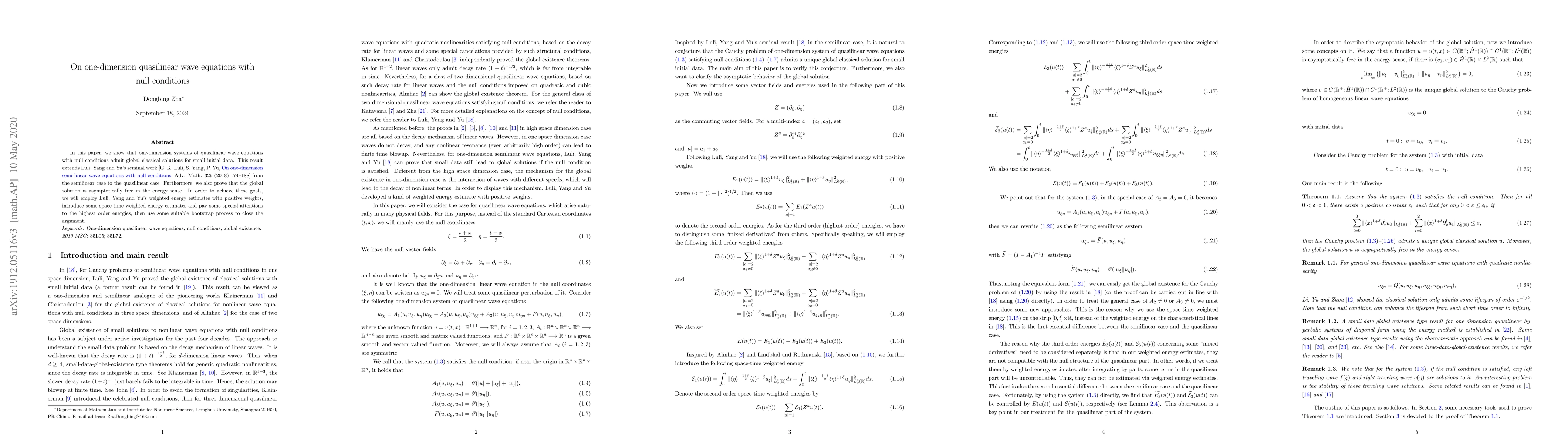 In this paper, we show that one-dimension systems of quasilinear wave equations with null conditions admit global classical solutions for small initial data. This result extends Luli, Yang and Yu's seminal work [G. Luli, S. Yang, P. Yu, On one-dimension semi-linear wave equations with null conditions, Adv. Math.329 (2018) 174-188] from the semilinear case to the quasilinear case. Furthermore, we also prove that the global solution is asymptotically free in the energy sense. In order to achieve these goals, we will employ Luli, Yang and Yu's weighted energy estimates with positive weights, introduce some space-time weighted energy estimates and pay some special attentions to the highest order energies, then use some suitable bootstrap process to close the argument.