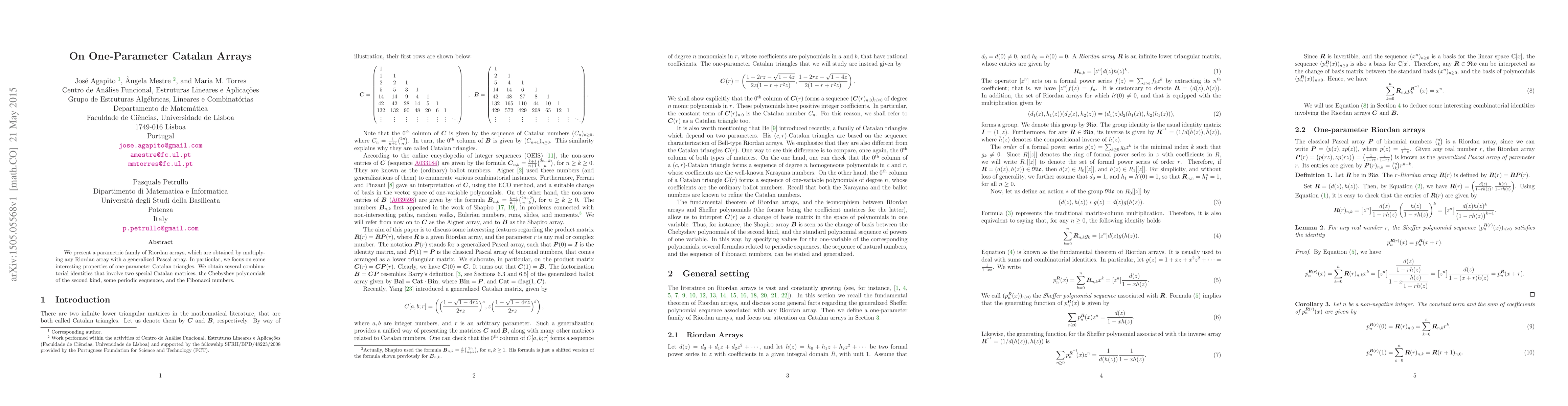 This paper introduces a parametric family of Riordan arrays formed by multiplying any Riordan array with a generalized Pascal array, highlighting properties of one-parameter Catalan triangles and deriving combinatorial identities involving Chebyshev polynomials, periodic sequences, and Fibonacci numbers.