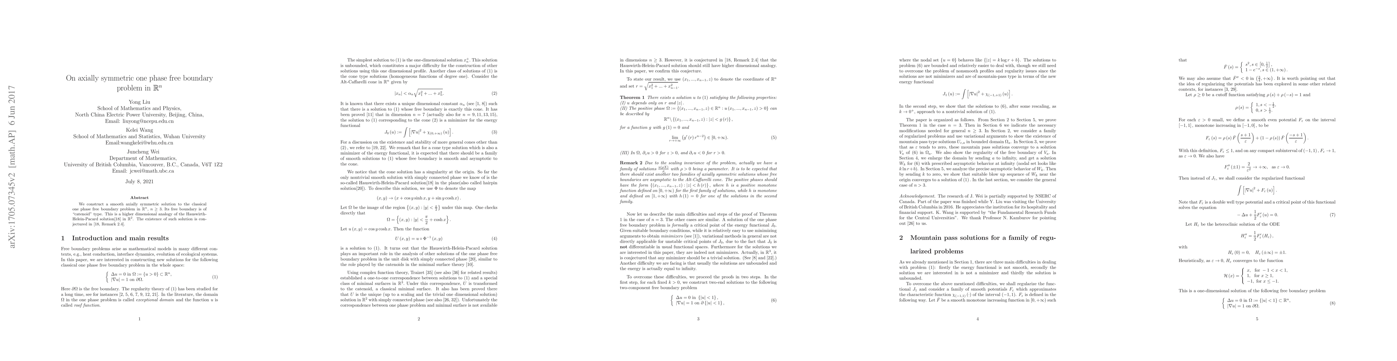 We construct a smooth axially symmetric solution to the classical one phase free boundary problem in $\mathbb{R}^{N}$. Its free boundary is of \textquotedblleft catenoid\textquotedblright\ type. This is a higher dimensional analogy of the Hauswirth-Helein-Pacard solution in $\mathbb{R}% ^{2}$ (\cite{Pacard}). The existence of such solution is conjectured in \cite [Remark 2.4]{Pacard}.