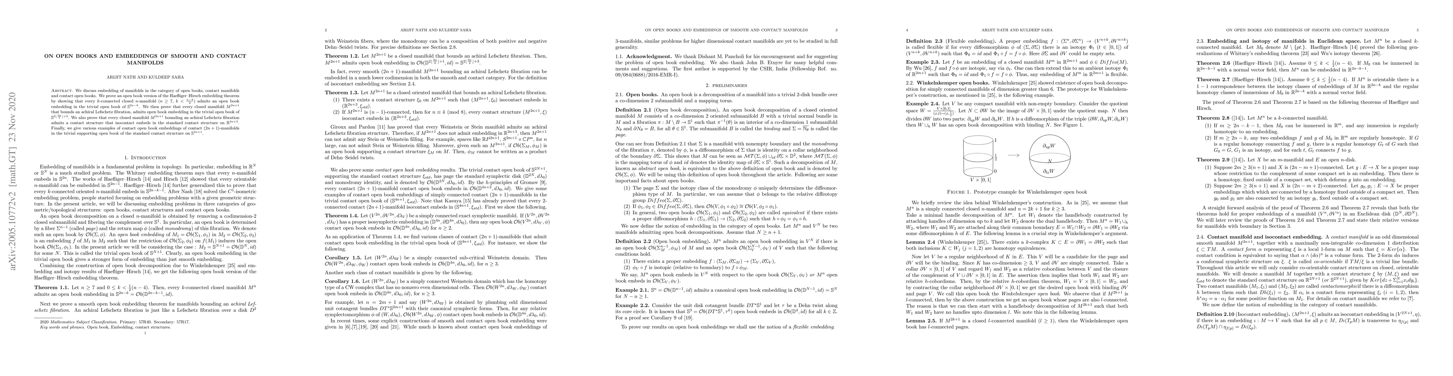 This paper proves embeddings of $k$-connected closed $n$-manifolds into trivial open books of $\mathbb{S}^{2n-k}$ and demonstrates that closed $M^{2n+1}$ manifolds bounding achiral Lefschetz fibrations can be embedded in $\mathbb{S}^{2\lfloor\frac{3n}{2}\rfloor + 3}$ and isocontact embedded in $\mathbb{R}^{2n+3}$. It also explores various contact open book embeddings of $(2n+1)$-manifolds in $\mathbb{S}^{4n+1}$.