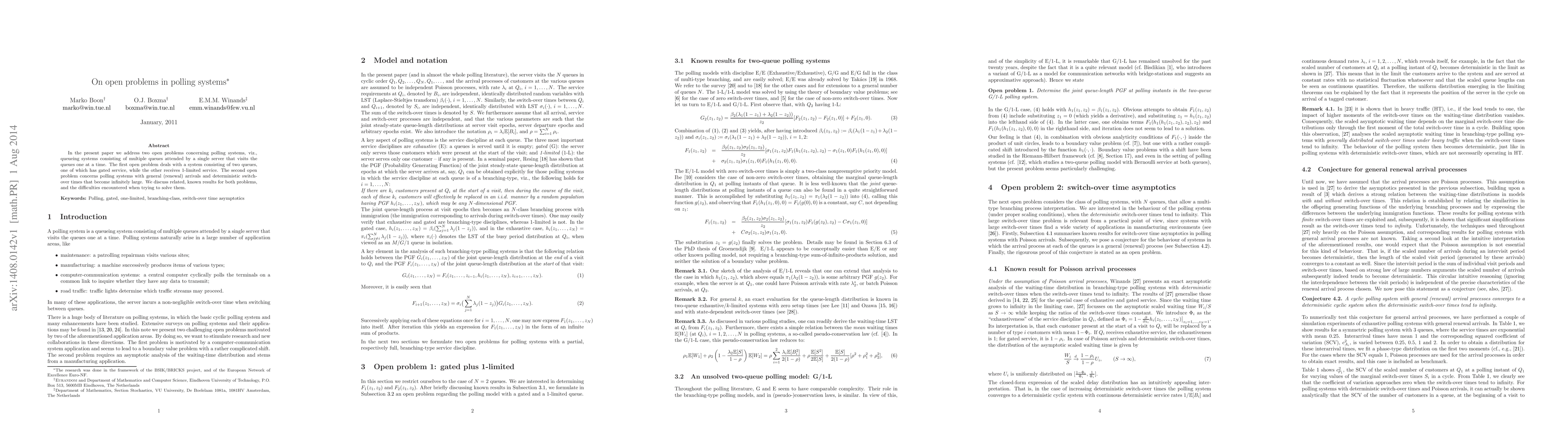 This paper tackles two unresolved issues in polling systems: one involving two queues with different service constraints, and another concerning systems with general arrivals and increasingly long switch-over times. It explores existing results and the challenges in solving these problems.