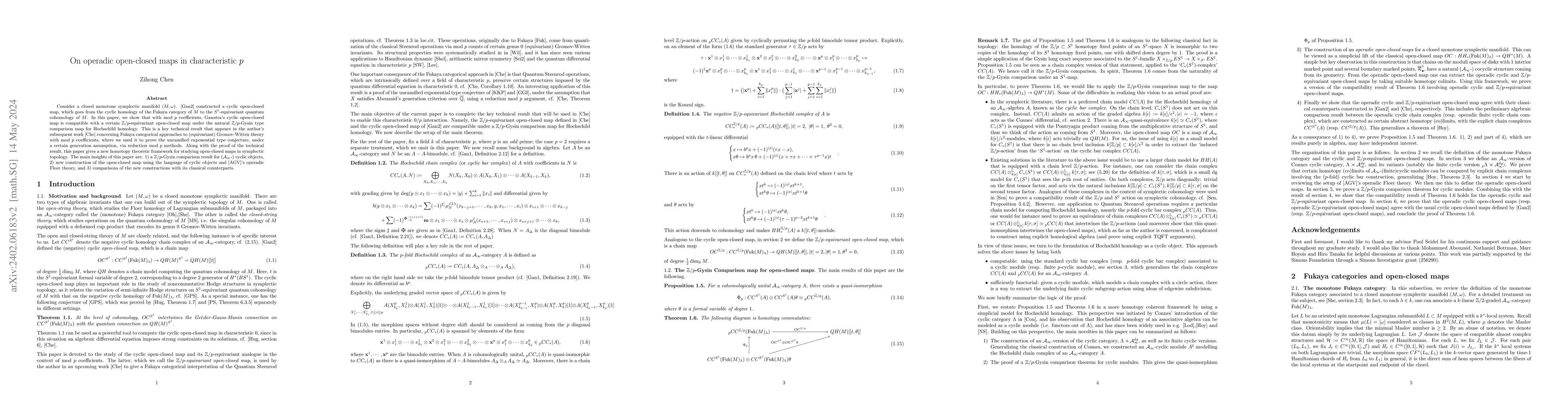 This paper explores operadic open-closed maps in characteristic $p$ by proving compatibility of Ganatra's cyclic open-closed map with a $\mathbb{Z}/p$-equivariant map under a Gysin comparison. It introduces a new homotopy framework for open-closed maps in symplectic topology.