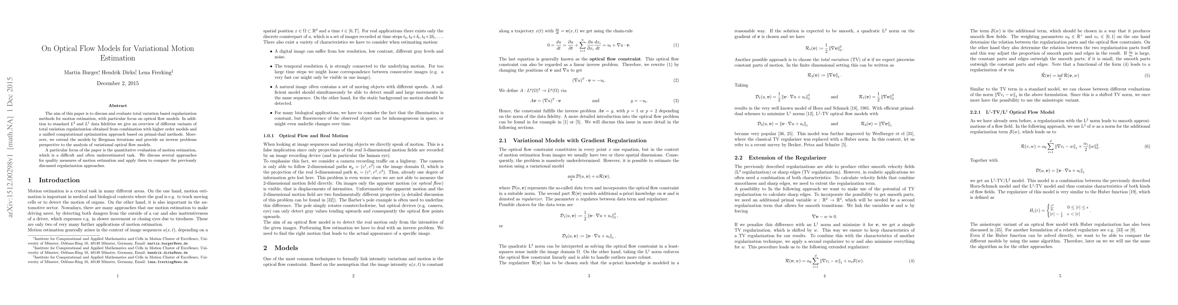 This paper evaluates total variation based regularization methods for motion estimation with a focus on optical flow models, highlighting their computational efficiency and quality measures.