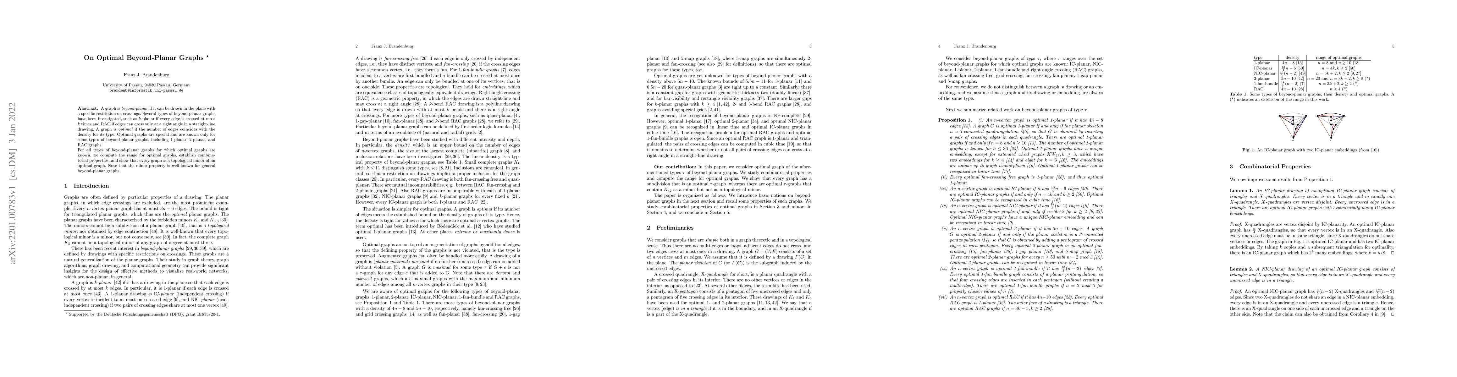 This paper investigates optimal beyond-planar graphs, where the number of edges matches the density for specific types. It computes the range for optimal graphs, establishes their combinatorial properties, and demonstrates that every beyond-planar graph is a topological minor of an optimal graph.