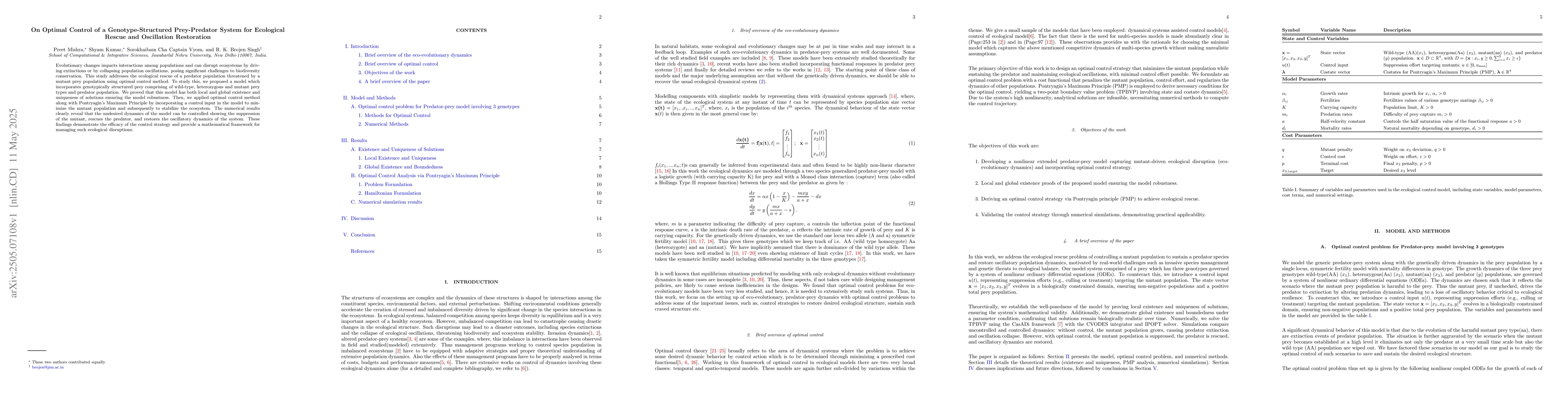 Development of an optimal control model for genotype-structured prey-predator systems, incorporating Pontryagin Maximum Principle for minimizing mutant prey impact.