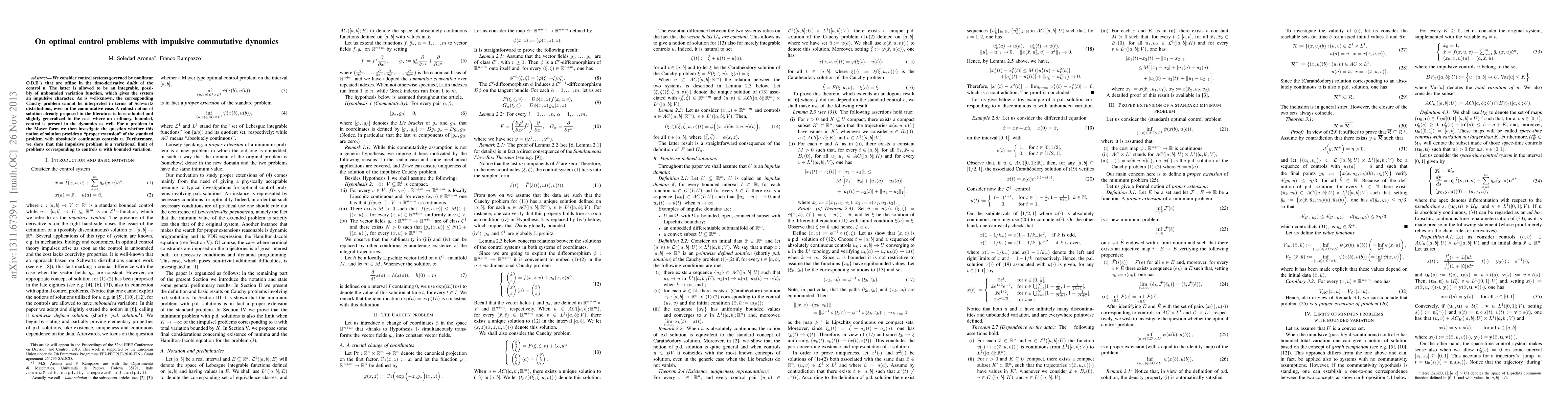 We consider control systems governed by nonlinear O.D.E.'s that are affine in the time-derivative du/dt of the control u. The latter is allowed to be an integrable, possibly of unbounded variation function, which gives the system an impulsive character. As is well-known, the corresponding Cauchy problem cannot be interpreted in terms of Schwartz distributions, even in the commutative case. A robust notion of solution already proposed in the literature is here adopted and slightly generalized to the case where an ordinary, bounded, control is present in the dynamics as well. For a problem in the Mayer form we then investigate the question whether this notion of solution provides a "proper extension" of the standard problem with absolutely continuous controls u. Furthermore, we show that this impulsive problem is a variational limit of problems corresponding to controls u with bounded variation.