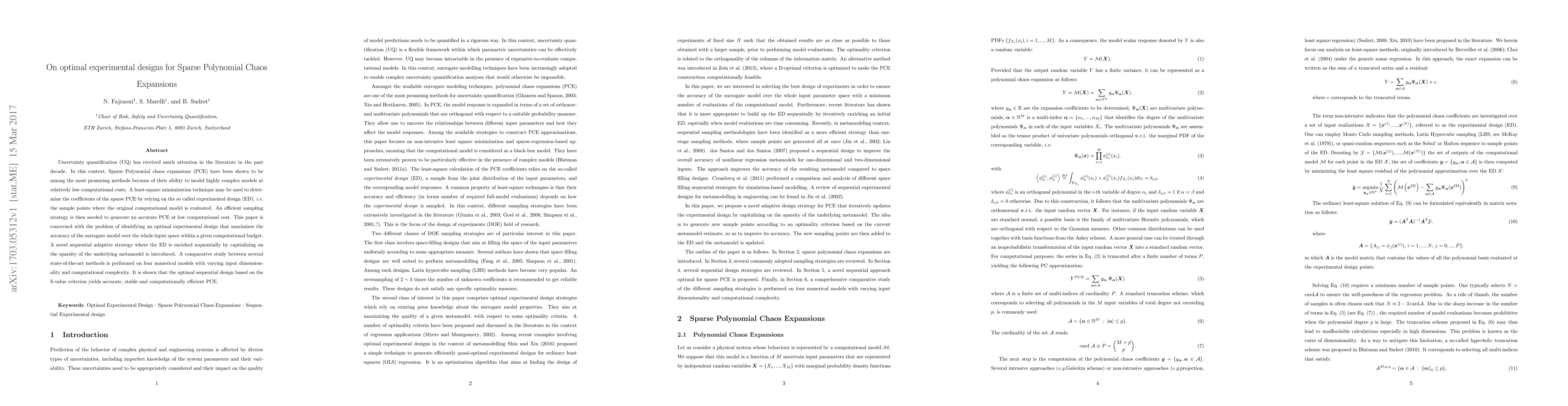 Uncertainty quantification (UQ) has received much attention in the literature in the past decade. In this context, Sparse Polynomial chaos expansions (PCE) have been shown to be among the most promising methods because of their ability to model highly complex models at relatively low computational costs. A least-square minimization technique may be used to determine the coefficients of the sparse PCE by relying on the so called experimental design (ED), i.e. the sample points where the original computational model is evaluated. An efficient sampling strategy is then needed to generate an accurate PCE at low computational cost. This paper is concerned with the problem of identifying an optimal experimental design that maximizes the accuracy of the surrogate model over the whole input space within a given computational budget. A novel sequential adaptive strategy where the ED is enriched sequentially by capitalizing on the sparsity of the underlying metamodel is introduced. A comparative study between several state-of-the-art methods is performed on four numerical models with varying input dimensionality and computational complexity. It is shown that the optimal sequential design based on the S-value criterion yields accurate, stable and computationally efficient PCE.