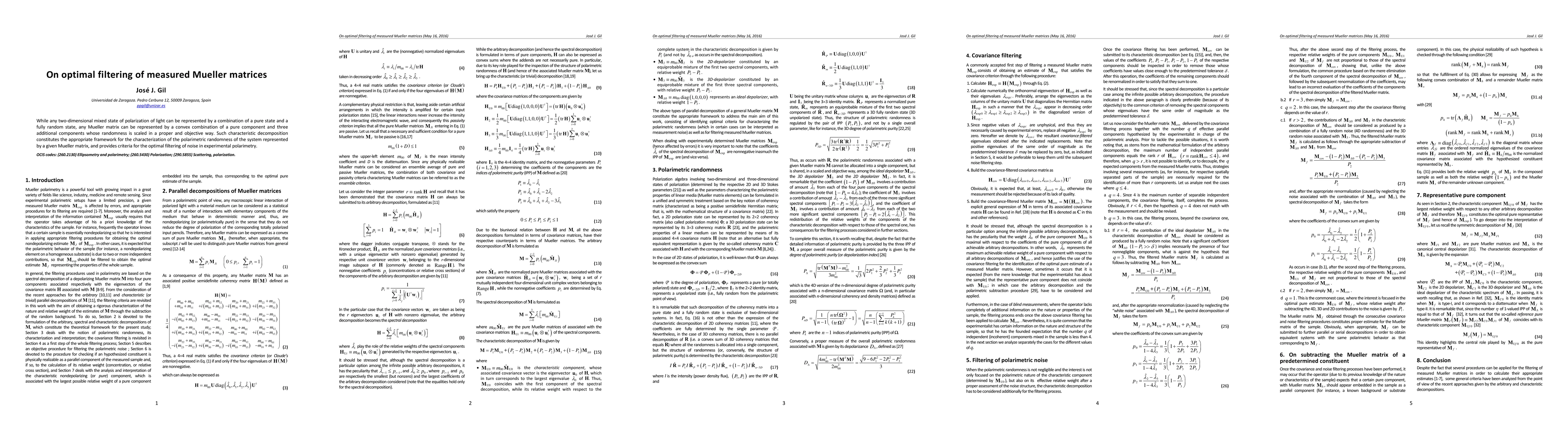 This paper proposes a method to decompose Mueller matrices into pure and random components, providing a framework for characterizing polarimetric randomness and establishing criteria for optimal noise filtering in experimental polarimetry. The decomposition aids in the optimal filtering of measured Mueller matrices to enhance the accuracy of the measurements.