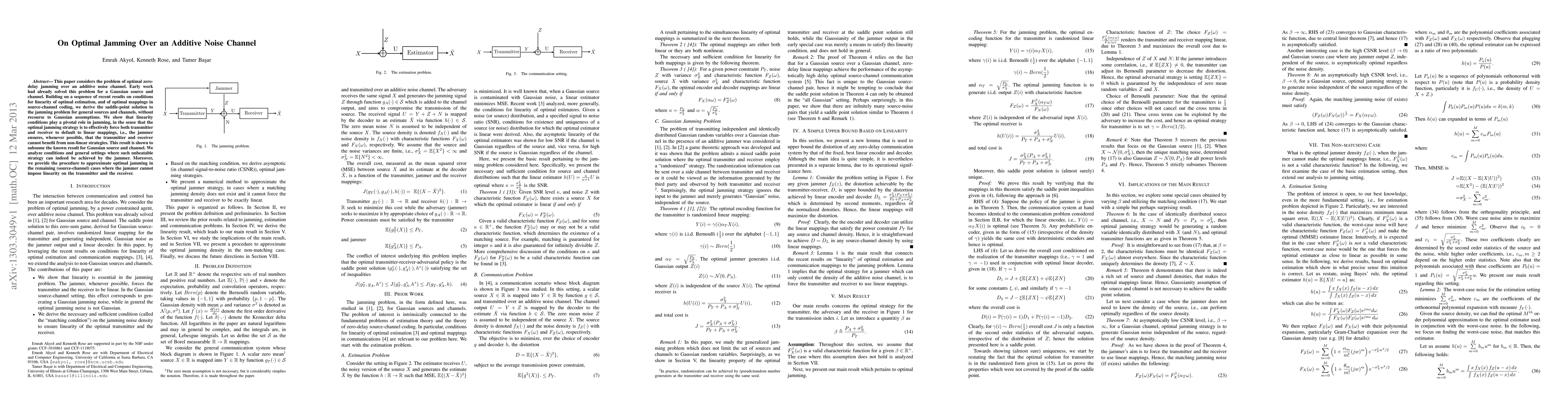 This paper derives the saddle-point solution for optimal zero-delay jamming over an additive noise channel, showing that forcing linear mappings is the optimal jamming strategy. It generalizes the known Gaussian result and provides a procedure for approximating optimal jamming in non-linear scenarios.