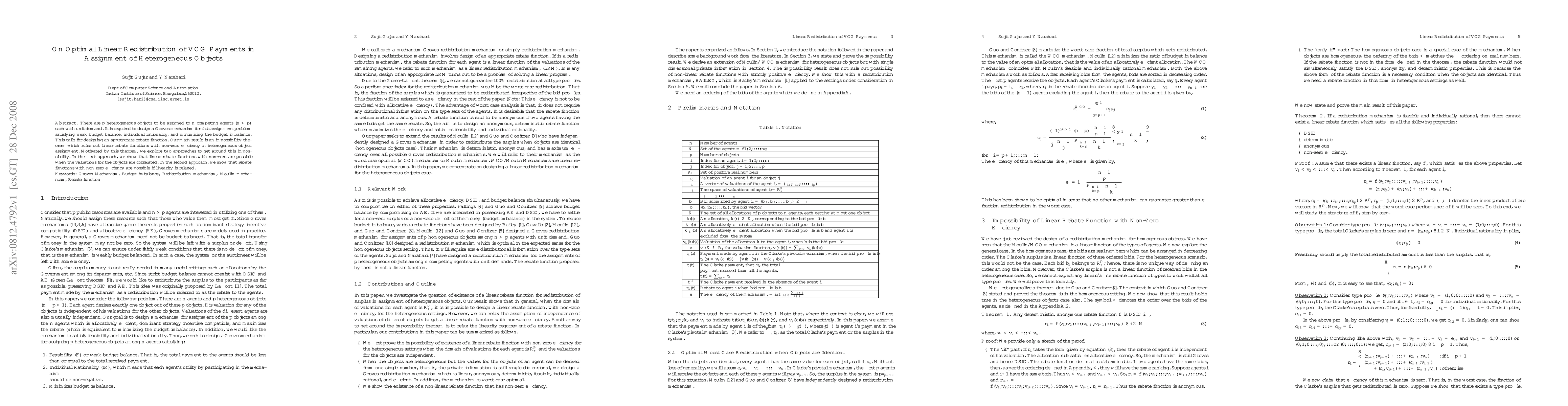There are p heterogeneous objects to be assigned to n competing agents (n > p) each with unit demand. It is required to design a Groves mechanism for this assignment problem satisfying weak budget balance, individual rationality, and minimizing the budget imbalance. This calls for designing an appropriate rebate function. Our main result is an impossibility theorem which rules out linear rebate functions with non-zero efficiency in heterogeneous object assignment. Motivated by this theorem, we explore two approaches to get around this impossibility. In the first approach, we show that linear rebate functions with non-zero are possible when the valuations for the objects are correlated. In the second approach, we show that rebate functions with non-zero efficiency are possible if linearity is relaxed.