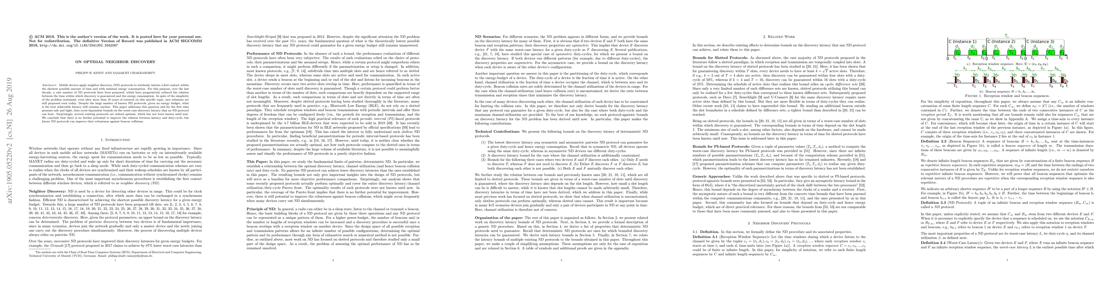 This paper establishes optimal bounds on the worst-case latency for neighbor discovery protocols in mobile devices, revealing that some existing protocols are already optimal. It concludes that further improvements in latency versus duty-cycle are not possible, but future work should focus on enhancing robustness against beacon collisions.