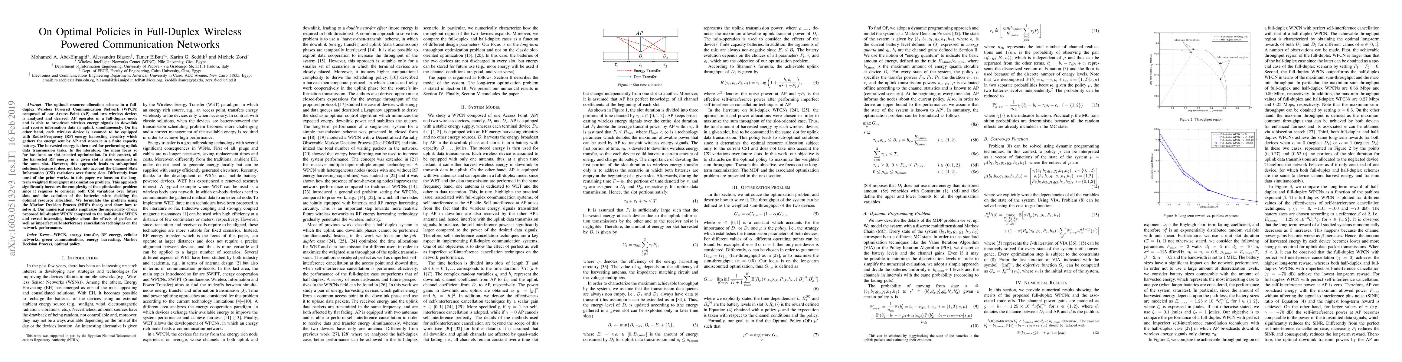 The optimal resource allocation scheme in a full-duplex Wireless Powered Communication Network (WPCN) composed of one Access Point (AP) and two wireless devices is analyzed and derived. AP operates in a full-duplex mode and is able to broadcast wireless energy signals in downlink and receive information data in uplink simultaneously. On the other hand, each wireless device is assumed to be equipped with Radio-Frequency (RF) energy harvesting circuitry which gathers the energy sent by AP and stores it in a finite capacity battery. The harvested energy is then used for performing uplink data transmission tasks. In the literature, the main focus so far has been on slot-oriented optimization. In this context, all the harvested RF energy in a given slot is also consumed in the same slot. However, this approach leads to sub-optimal solutions because it does not take into account the Channel State Information (CSI) variations over future slots. Differently from most of the prior works, in this paper we focus on the long-term weighted throughput maximization problem. This approach significantly increases the complexity of the optimization problem since it requires to consider both CSI variations over future slots and the evolution of the batteries when deciding the optimal resource allocation. We formulate the problem using the Markov Decision Process (MDP) theory and show how to solve it. Our numerical results emphasize the superiority of our proposed full-duplex WPCN compared to the half-duplex WPCN and reveal interesting insights about the effects of perfect as well as imperfect self-interference cancellation techniques on the network performance.