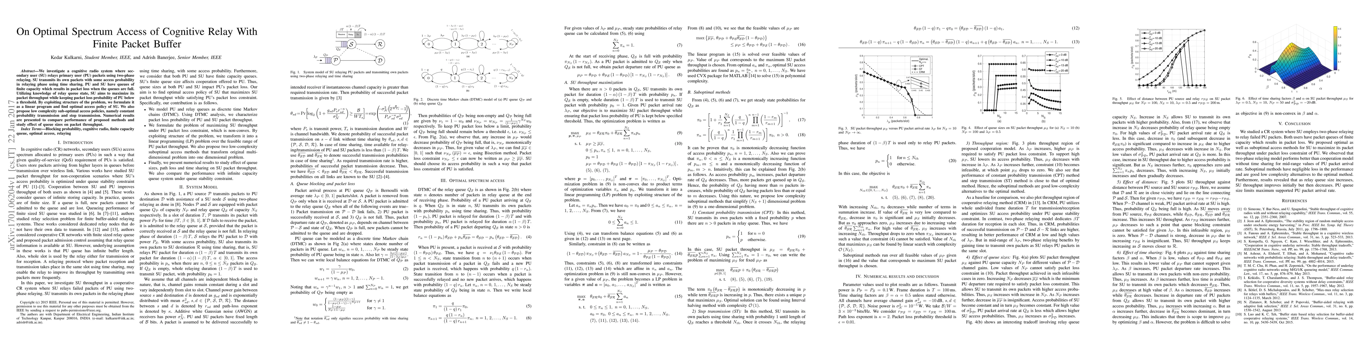 We investigate a cognitive radio system where secondary user (SU) relays primary user (PU) packets using two-phase relaying. SU transmits its own packets with some access probability in relaying phase using time sharing. PU and SU have queues of finite capacity which results in packet loss when the queues are full. Utilizing knowledge of relay queue state, SU aims to maximize its packet throughput while keeping packet loss probability of PU below a threshold. By exploiting structure of the problem, we formulate it as a linear program and find optimal access policy of SU. We also propose low complexity sub-optimal access policies, namely constant probability transmission and step transmission. Numerical results are presented to compare performance of proposed methods and study effect of queue sizes on packet throughput.