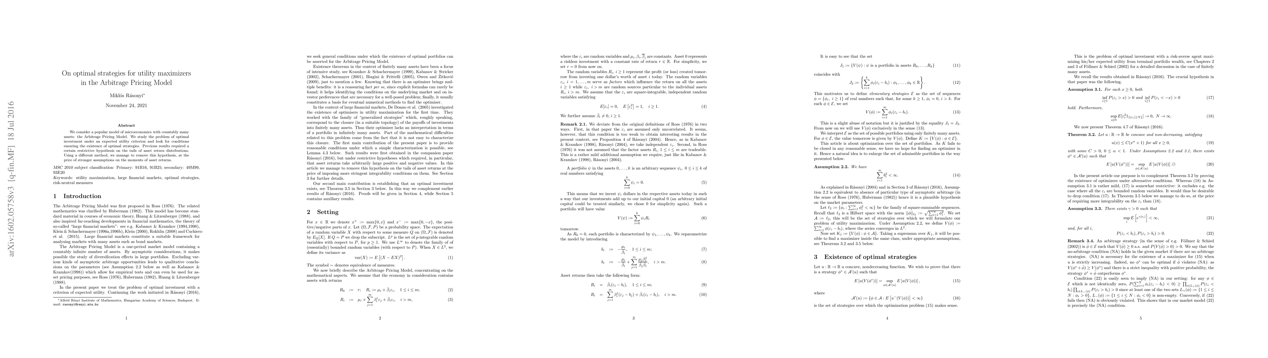Researchers in the Arbitrage Pricing Model found a way to achieve optimal investment strategies without restrictive assumptions on asset return distributions, but at the cost of stronger moment assumptions.