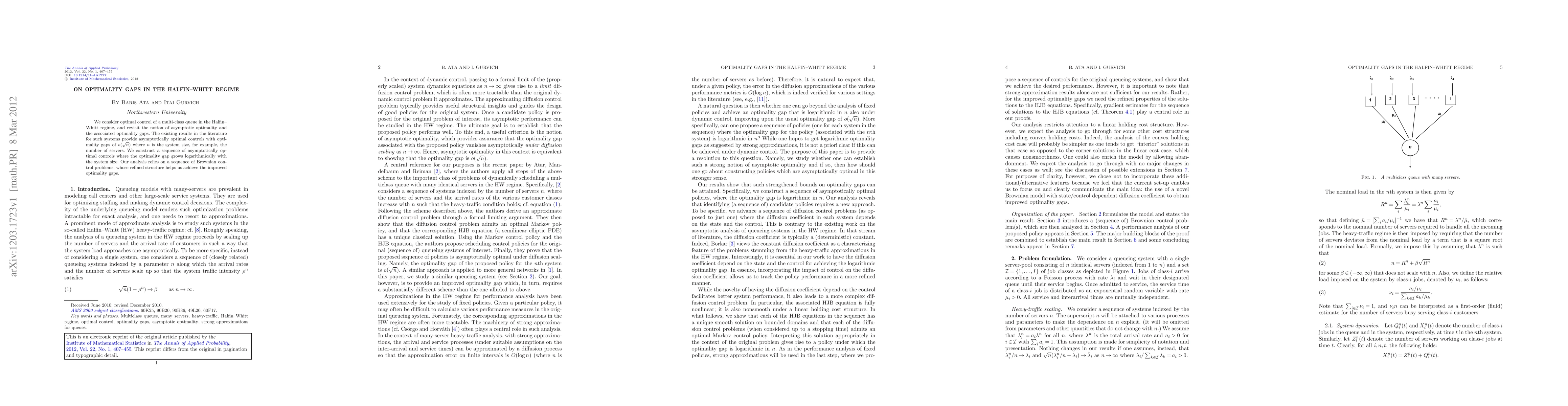 We consider optimal control of a multi-class queue in the Halfin--Whitt regime, and revisit the notion of asymptotic optimality and the associated optimality gaps. The existing results in the literature for such systems provide asymptotically optimal controls with optimality gaps of $o(\sqrt{n})$ where $n$ is the system size, for example, the number of servers. We construct a sequence of asymptotically optimal controls where the optimality gap grows logarithmically with the system size. Our analysis relies on a sequence of Brownian control problems, whose refined structure helps us achieve the improved optimality gaps.
