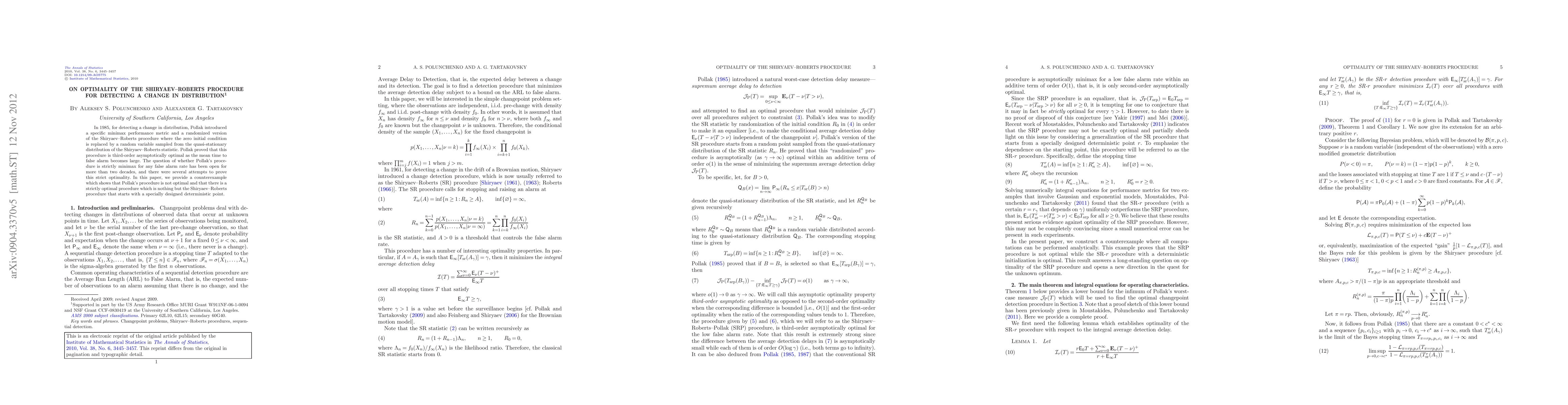 In 1985, for detecting a change in distribution, Pollak introduced a specific minimax performance metric and a randomized version of the Shiryaev-Roberts procedure where the zero initial condition is replaced by a random variable sampled from the quasi-stationary distribution of the Shiryaev-Roberts statistic. Pollak proved that this procedure is third-order asymptotically optimal as the mean time to false alarm becomes large. The question of whether Pollak's procedure is strictly minimax for any false alarm rate has been open for more than two decades, and there were several attempts to prove this strict optimality. In this paper, we provide a counterexample which shows that Pollak's procedure is not optimal and that there is a strictly optimal procedure which is nothing but the Shiryaev-Roberts procedure that starts with a specially designed deterministic point.