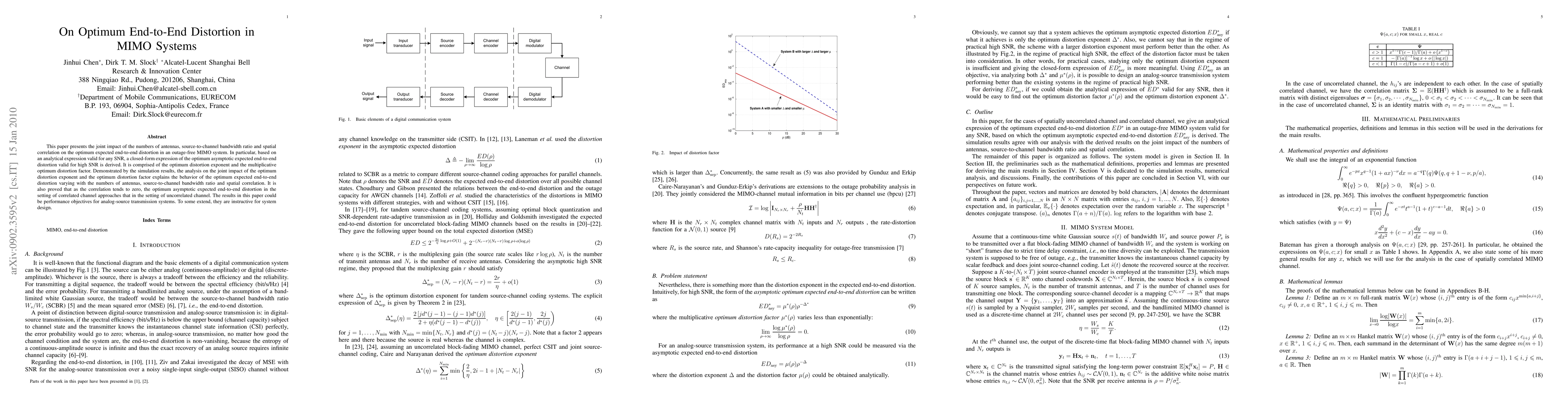 This paper derives a closed-form expression for the optimum asymptotic expected end-to-end distortion in high SNR MIMO systems, analyzing the impact of antenna numbers, source-to-channel bandwidth ratio, and spatial correlation. The results provide insights into system design for analog-source transmission.