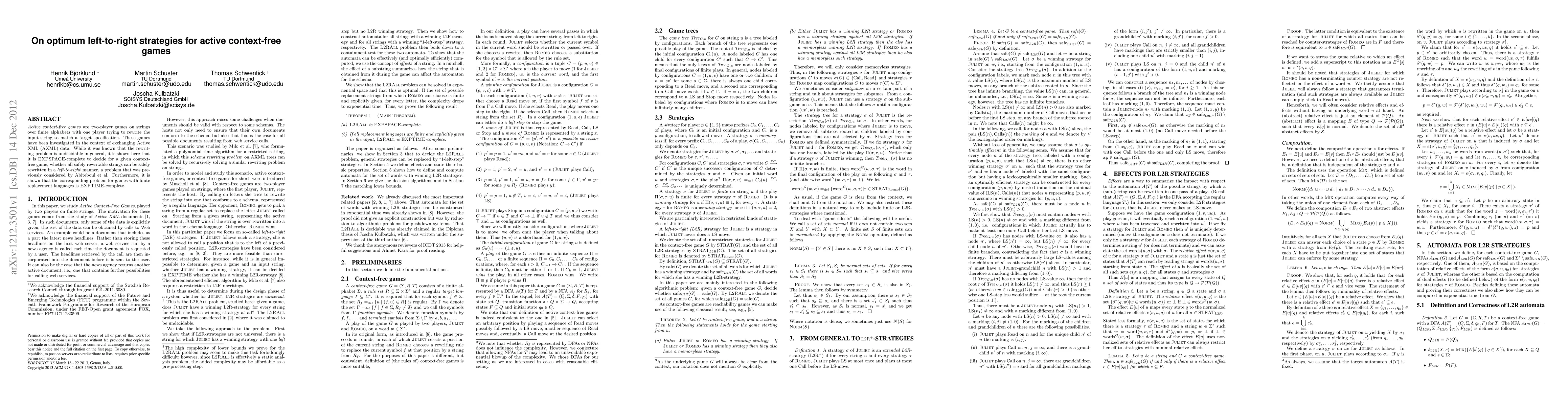 Active context-free games are two-player games on strings over finite alphabets with one player trying to rewrite the input string to match a target specification. These games have been investigated in the context of exchanging Active XML (AXML) data. While it was known that the rewriting problem is undecidable in general, it is shown here that it is EXPSPACE-complete to decide for a given context-free game, whether all safely rewritable strings can be safely rewritten in a left-to-right manner, a problem that was previously considered by Abiteboul et al. Furthermore, it is shown that the corresponding problem for games with finite replacement languages is EXPTIME-complete.