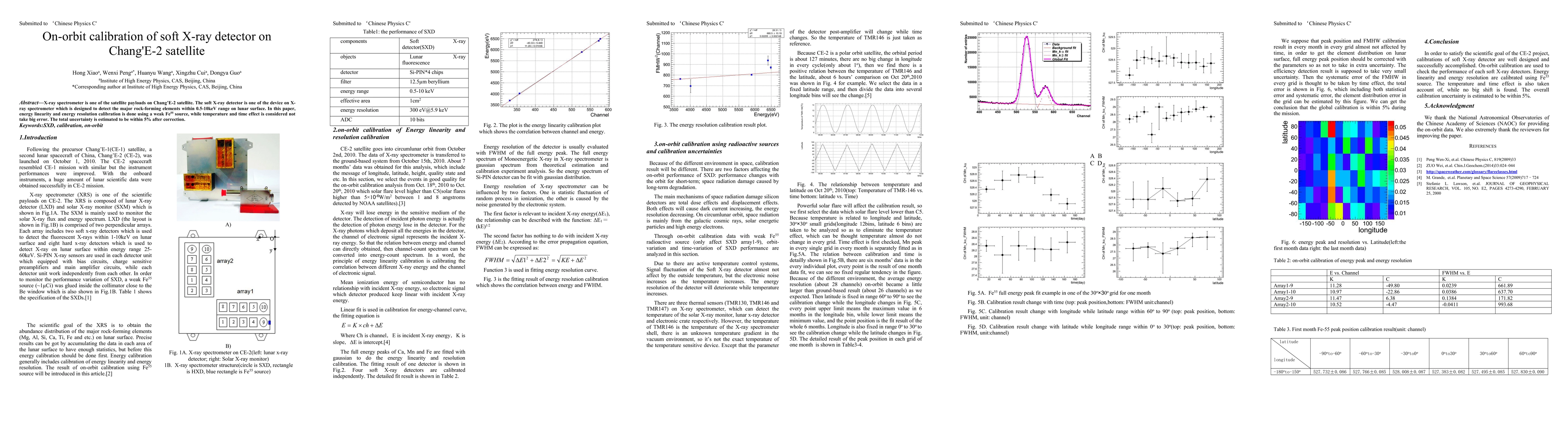 This paper details the on-orbit calibration of the soft X-ray detector on the Chang'E-2 satellite, focusing on energy linearity and resolution using a Fe55 source, achieving a total uncertainty within 5% after corrections. Temperature and time effects are deemed to have negligible impact.