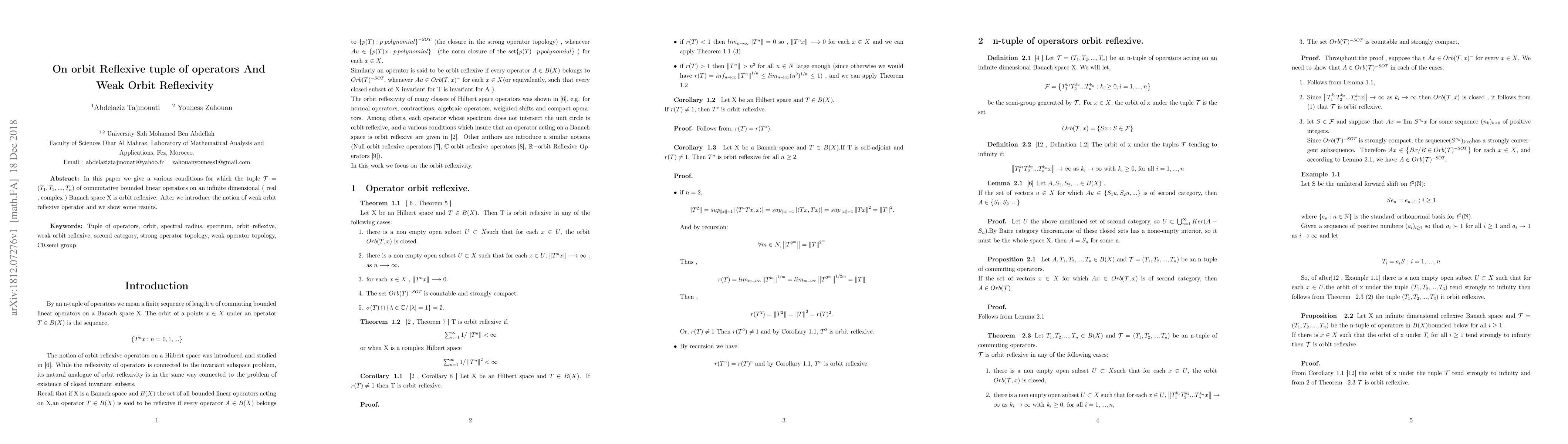 Key findings relate to various conditions that enable these operators to satisfy the property of being orbit reflexive.