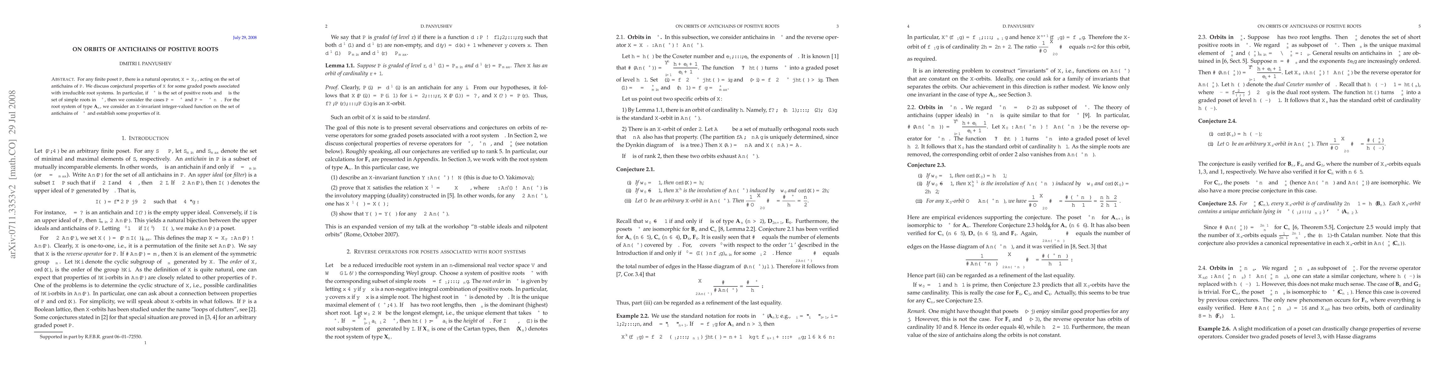 This paper explores a natural operator $X$ acting on antichains of a finite poset $P$ and conjectures properties for graded posets linked to irreducible root systems. It focuses on $X$-invariant functions in the context of type $A_n$ root systems and establishes some properties of these functions.
