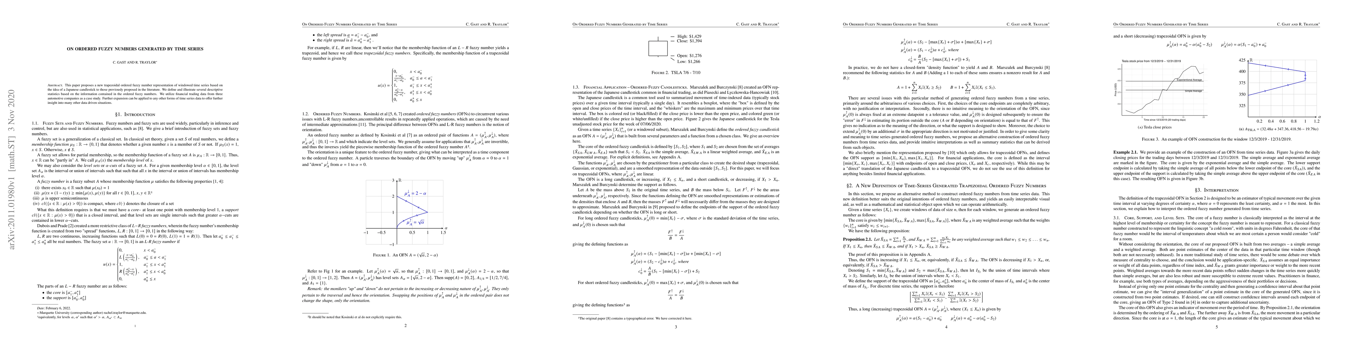 This paper proposes a new trapezoidal ordered fuzzy number representation of windowed time series based on the idea of a Japanese candlestick to those previously proposed in the literature. We define and illustrate several descriptive statistics based on the information contained in the ordered fuzzy numbers. We utilize financial trading data from three automotive companies as a case study. Further expansion can be applied to any other forms of time series data to offer further insight into many other data driven situations.