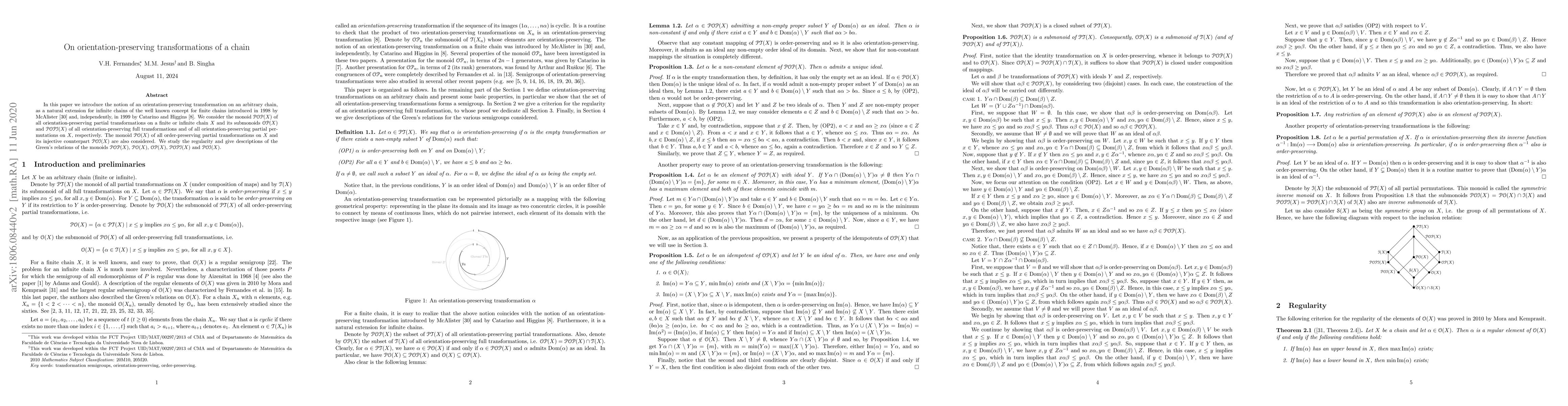 This paper extends the concept of orientation-preserving transformations to infinite chains, examining the structure and Green's relations of associated monoids, including $\mathscr{POP}(X)$ and $\mathscr{PO}(X)$, and their submonoids.
