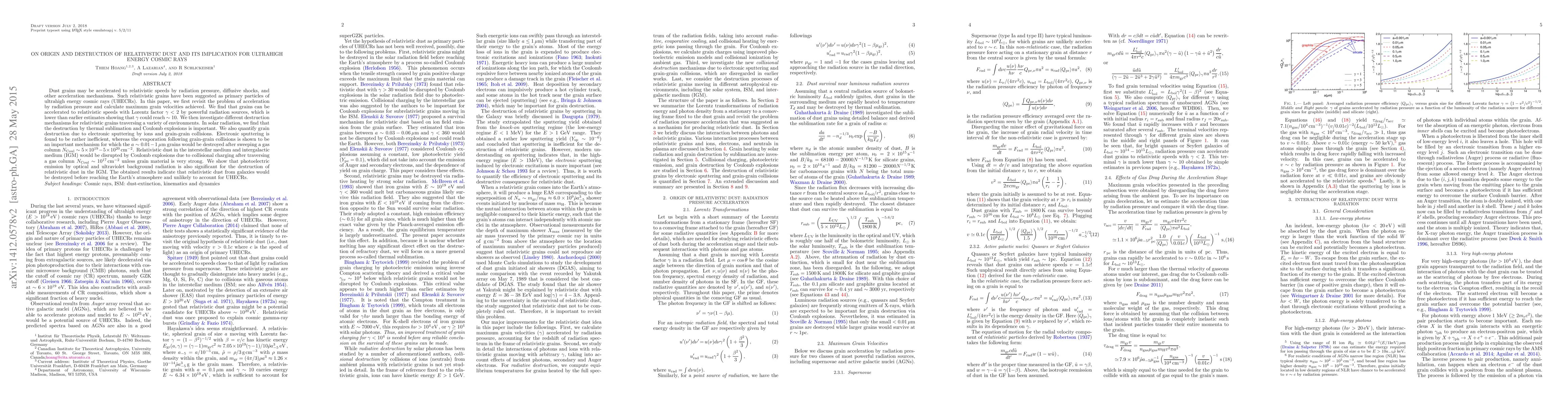 Relativistic dust can be accelerated to high speeds, but its destruction mechanisms limit its ability to survive long distances, making it unlikely to contribute to ultrahigh energy cosmic rays.