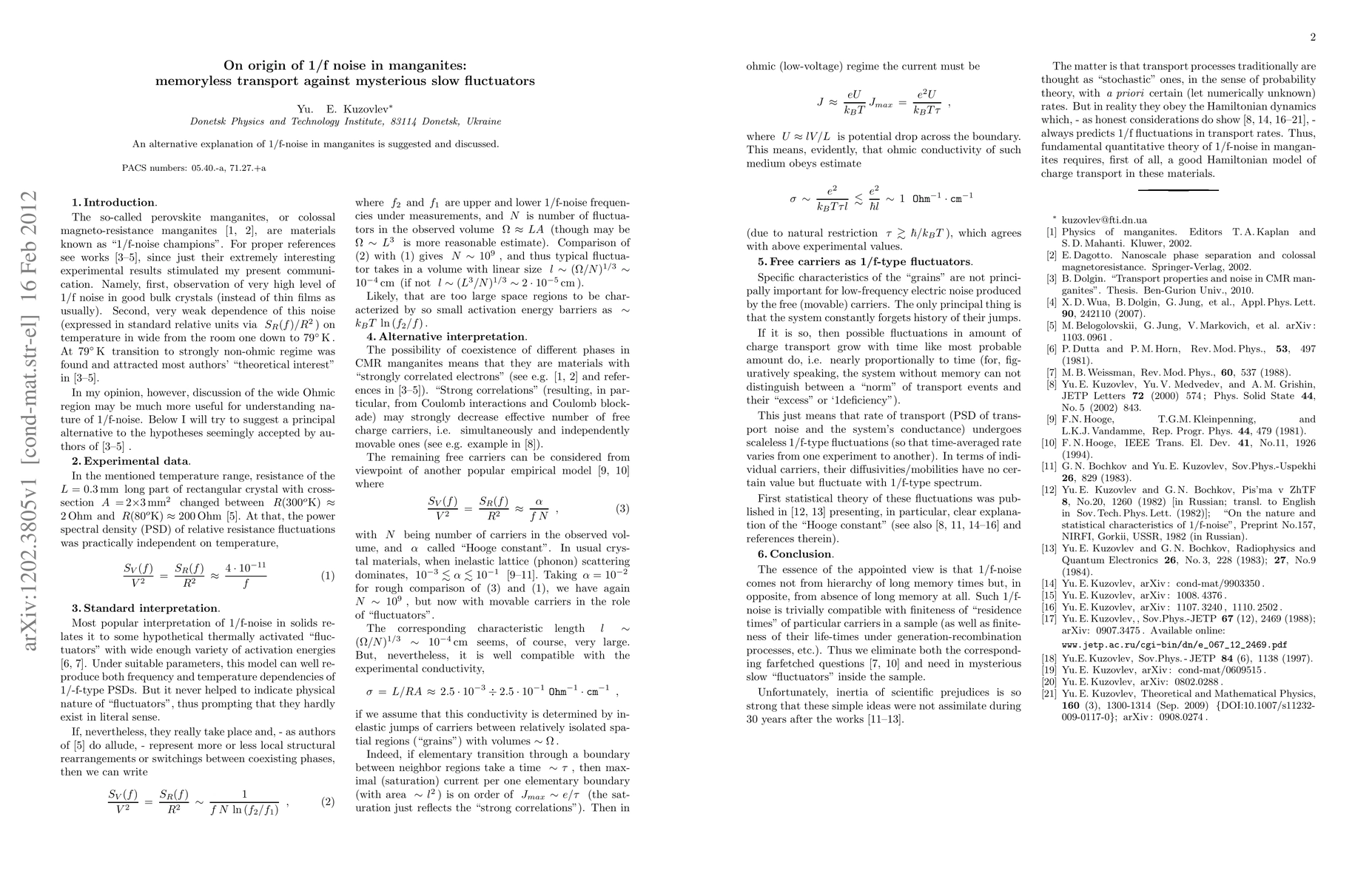 An alternative explanation of 1/f-noise in manganites is suggested and discussed