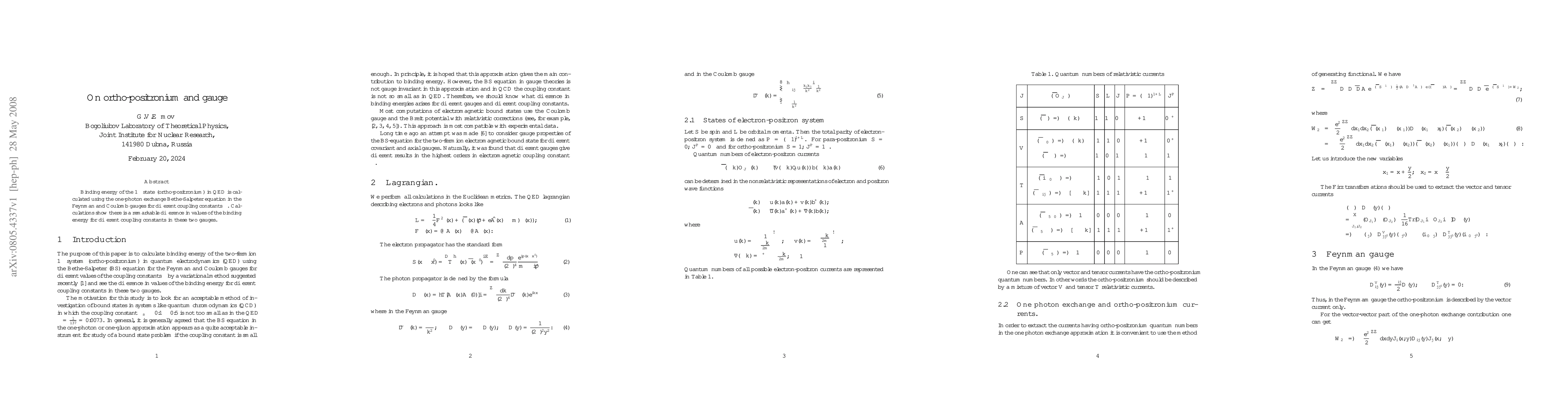 Binding energy of the $1^-$ state (ortho-positronium) in QED is calculated using the one-photon exchange Bethe-Salpeter equation in the Feynman and Coulomb gauges for different coupling constants $\alpha$. Calculations show there is a remarkable difference in values of the binding energy for different coupling constants in these two gauges.