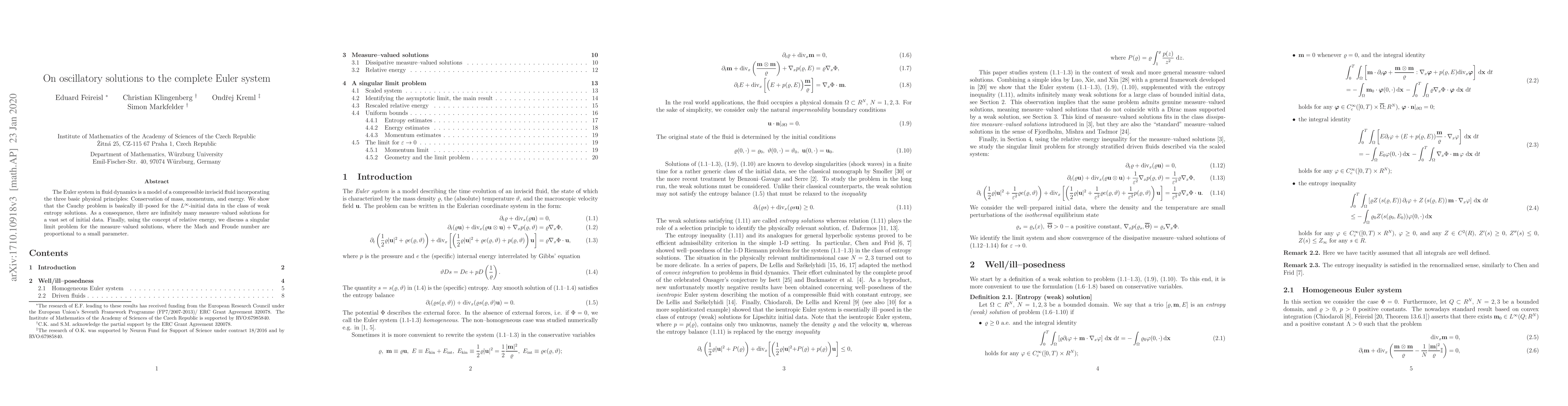The Euler system in fluid dynamics is a model of a compressible inviscid fluid incorporating the three basic physical principles: Conservation of mass, momentum, and energy. We show that the Cauchy problem is basically ill-posed for the $L^\infty$-initial data in the class of weak entropy solutions. As a consequence, there are infinitely many measure-valued solutions for a vast set of initial data. Finally, using the concept of relative energy, we discuss a singular limit problem for the measure-valued solutions, where the Mach and Froude number are proportional to a small parameter.