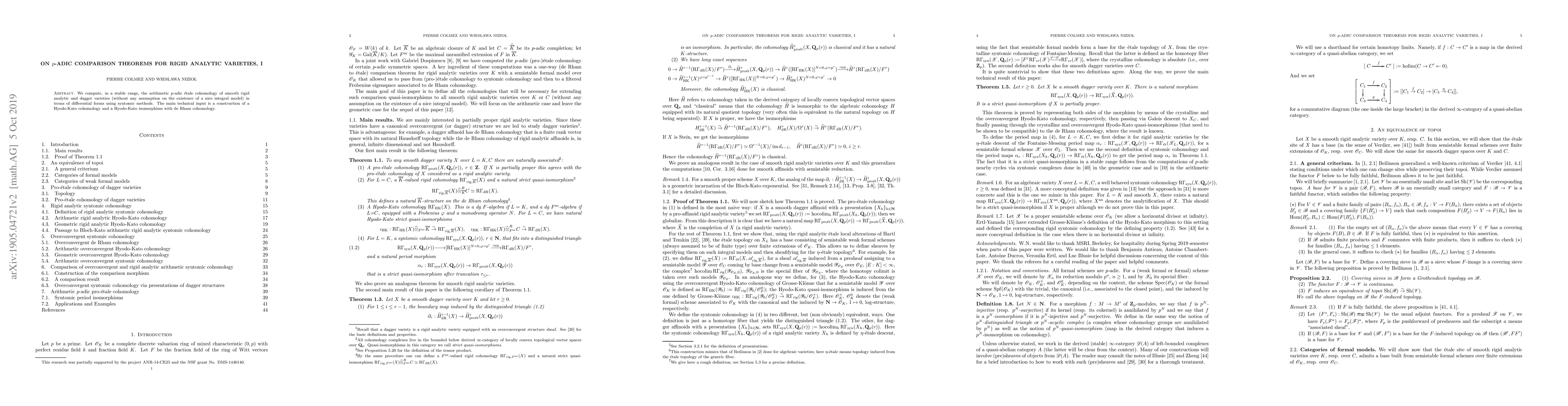 We compute, in a stable range, the arithmetic p-adic etale cohomology of smooth rigid analytic and dagger varieties (without any assumption on the existence of a nice integral model) in terms of differential forms using syntomic methods. The main technical input is a construction of a Hyodo-Kato cohomology and a Hyodo-Kato isomorphism with de Rham cohomology.