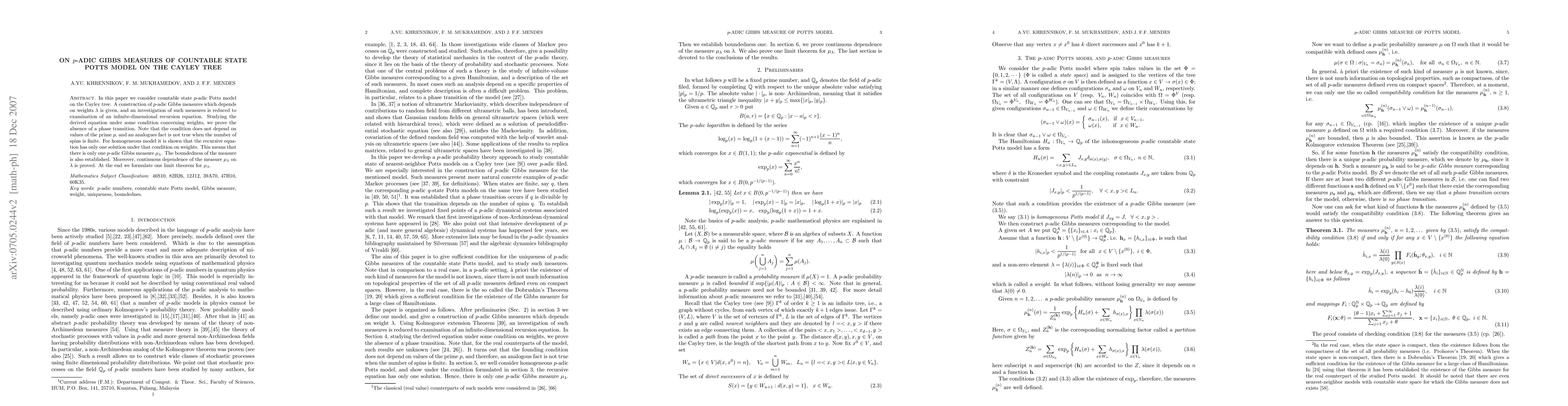 In the present paper we consider countable state $p$-adic Potts model on the Cayley tree. A construction of $p$-adic Gibbs measures which depends on weights $\l$ is given, and an investigation of such measures is reduced to examination of an infinite-dimensional recursion equation. Studying of the derived equation under some condition on weights, we prove absence of the phase transition. Note that the condition does not depend on values of the prime $p$, and an analogues fact is not true when the number of spins is finite. For homogeneous model it is shown that the recursive equation has only one solution under that condition on weights. This means that there is only one $p$-adic Gibbs measure $\m_\l$. The boundedness of the measure is also established. Moreover, continuous dependence the measure $\m_\l$ on $\l$ is proved. At the end we formulate one limit theorem for $\m_\l$.