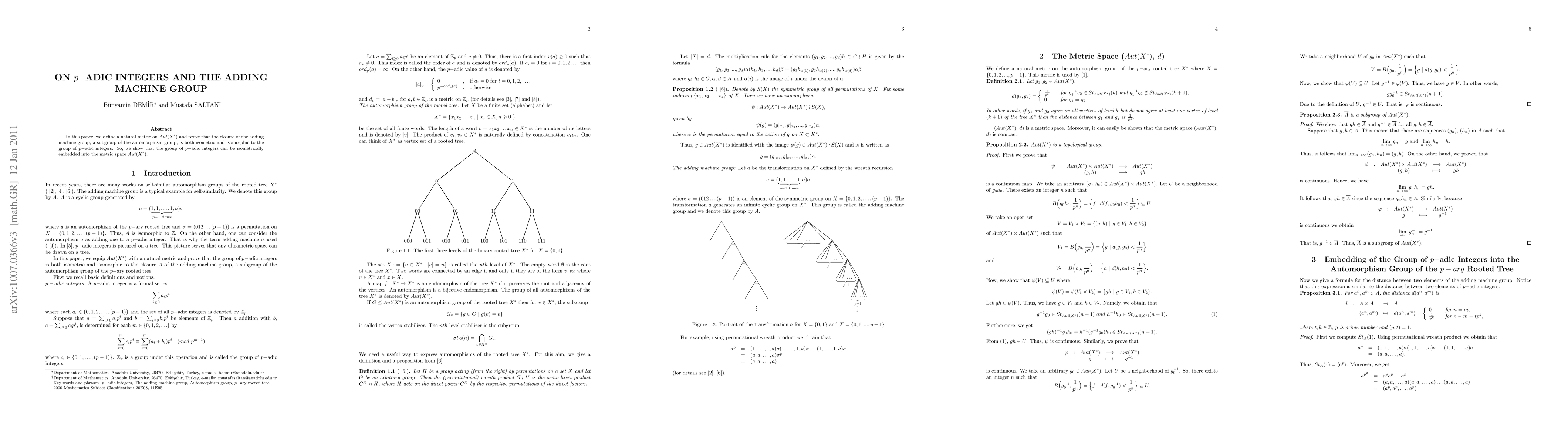This paper defines a metric on the automorphism group of X* and demonstrates that the closure of the adding machine group is both isometric and isomorphic to the group of p-adic integers, embedding the latter into the metric space Aut(X*).