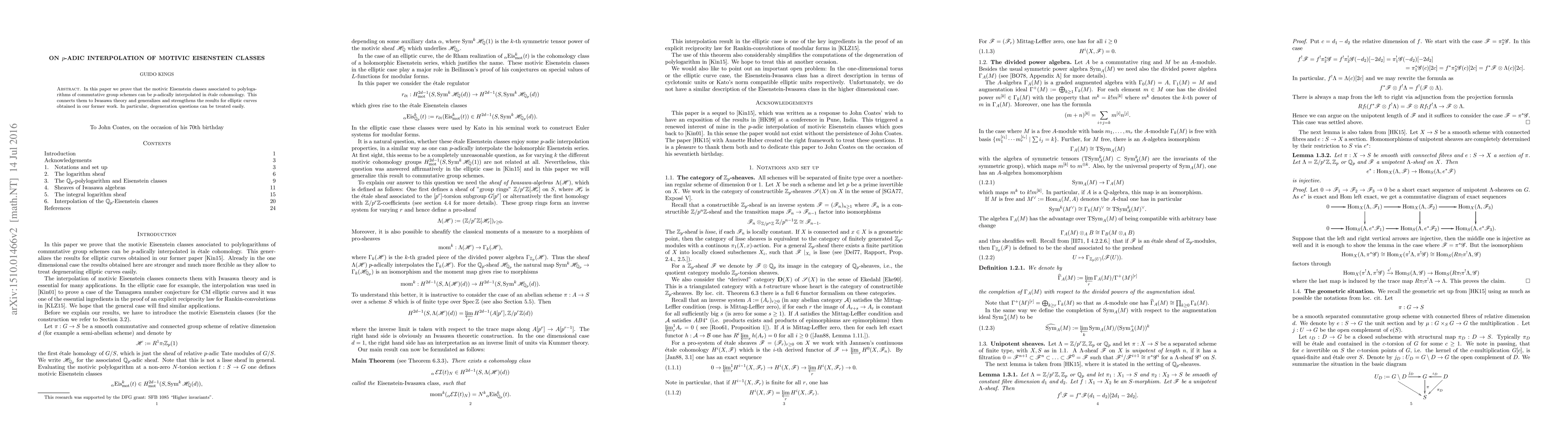 Researchers prove that motivic Eisenstein classes can be $p$-adically interpolated in etale cohomology, generalizing results for elliptic curves and providing a more flexible approach to degeneration questions.