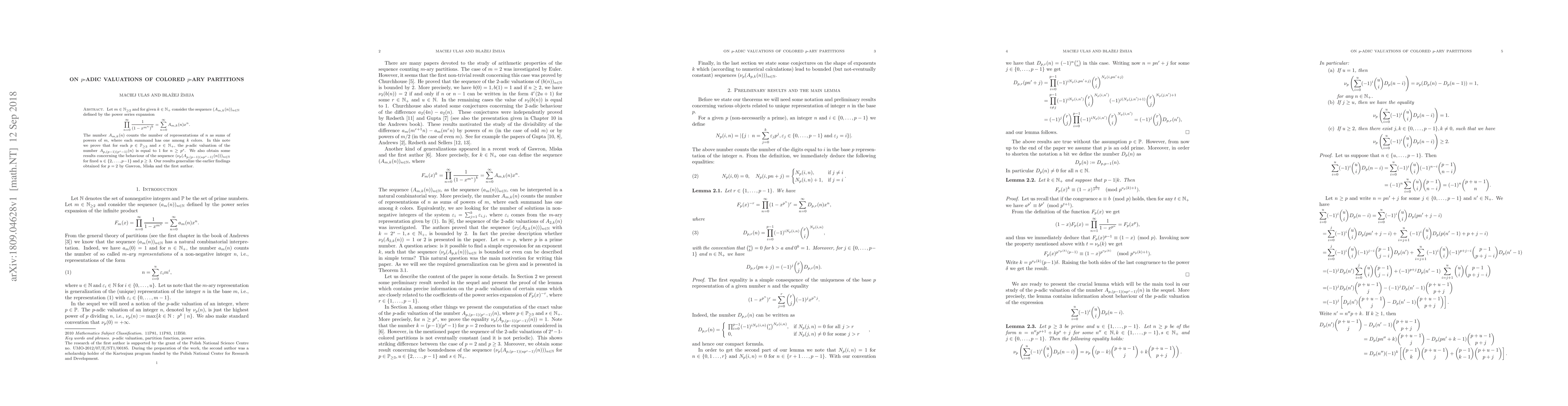 Let $m\in\N_{\geq 2}$ and for given $k\in\N_{+}$ consider the sequence $(A_{m,k}(n))_{n\in\N}$ defined by the power series expansion $$ \prod_{n=0}^{\infty}\frac{1}{\left(1-x^{m^{n}}\right)^{k}}=\sum_{n=0}^{\infty}A_{m,k}(n)x^{n}. $$ The number $A_{m,k}(n)$ counts the number of representations of $n$ as sums of powers of $m$, where each summand has one among $k$ colors. In this note we prove that for each $p\in\mathbb{P}_{\geq 3}$ and $s\in\N_{+}$, the $p$-adic valuation of the number $A_{p,(p-1)(p^s-1)}(n)$ is equal to 1 for $n\geq p^s$. We also obtain some results concerning the behaviour of the sequence $(\nu_{p}(A_{p,(p-1)(up^s-1)}(n)))_{n\in\N}$ for fixed $u\in\{2,\ldots,p-1\}$ and $p\geq 3$. Our results generalize the earlier findings obtained for $p=2$ by Gawron, Miska and the first author.