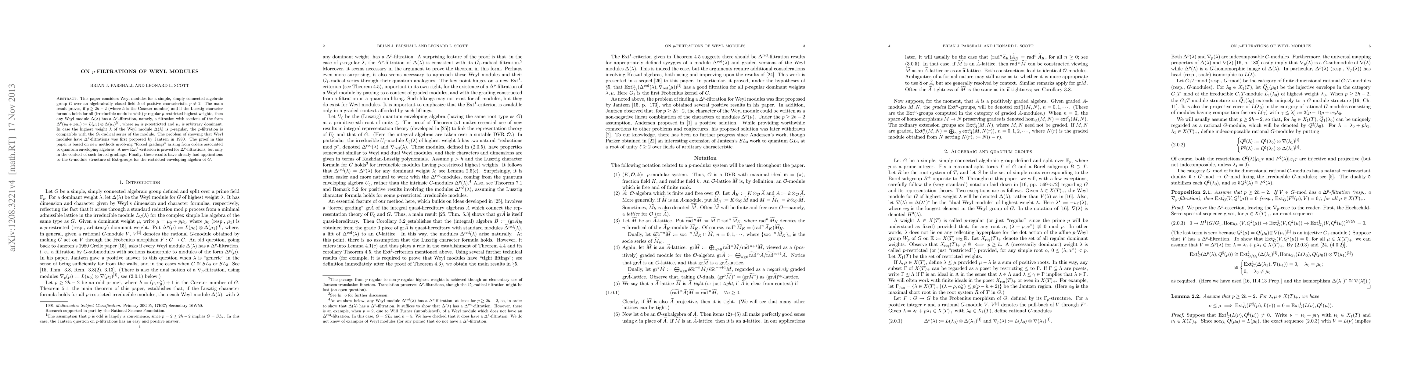 This paper proves that Weyl modules for a simple, simply connected algebraic group over a field of positive characteristic $p$ have a $\Delta^p$-filtration under certain conditions, addressing a long-standing problem first proposed by Jantzen in 1980. The filtration is compatible with the $G_1$-radical series when the highest weight is $p$-regular.