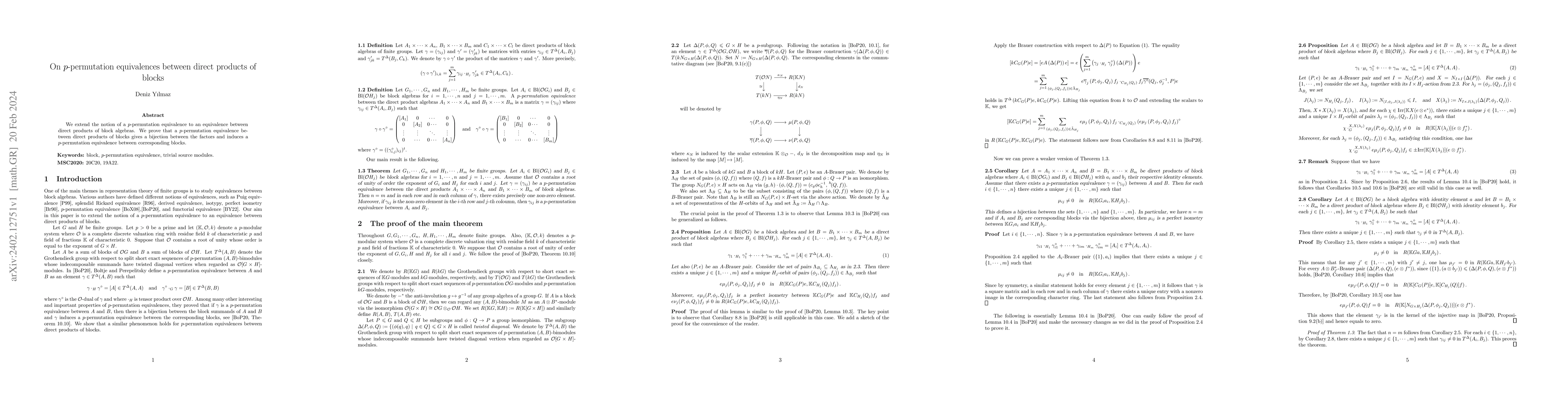 This paper extends the concept of p-permutation equivalence to direct products of block algebras, demonstrating that such equivalences induce bijections between the factors and establish p-permutation equivalences between corresponding individual blocks.