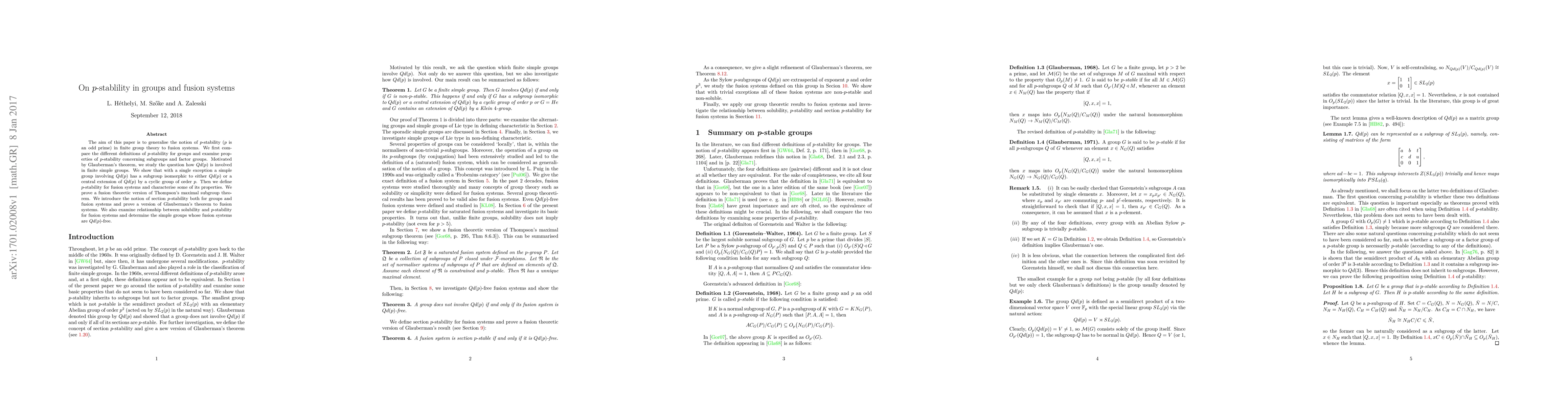 This paper generalizes the concept of p-stability to fusion systems and investigates the involvement of Qd(p) in finite simple groups. It proves that nearly all simple groups with Qd(p) have subgroups isomorphic to either Qd(p) or its central extensions, and introduces section p-stability for both groups and fusion systems, extending Glauberman's theorem to this context.