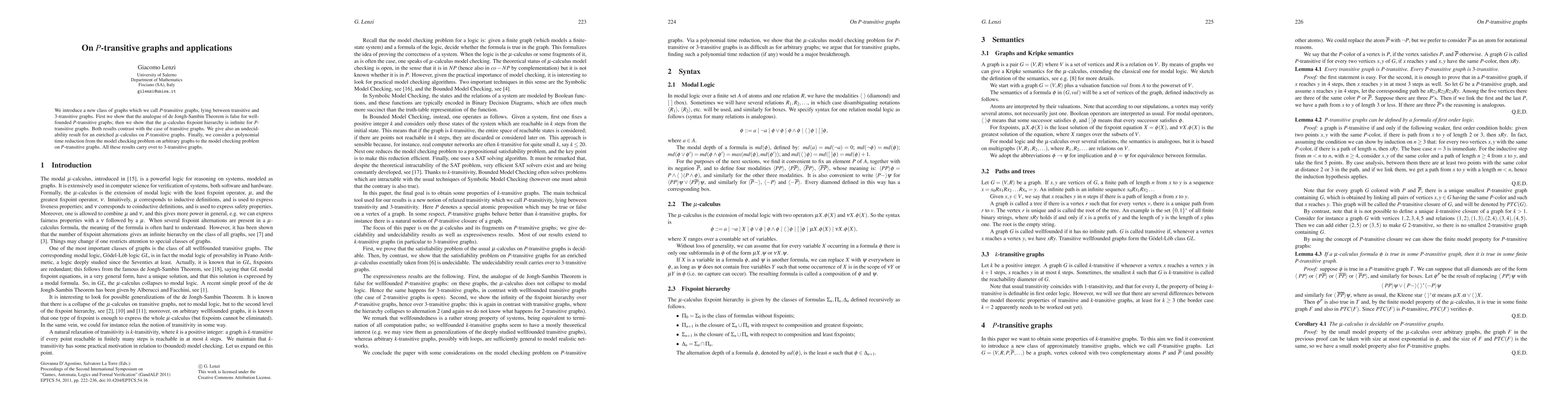 This paper introduces P-transitive graphs, a new class between transitive and 3-transitive graphs, and demonstrates that the de Jongh-Sambin Theorem does not hold for them. It also shows an infinite mu-calculus fixpoint hierarchy for P-transitive graphs, contrasting with transitive graphs, and presents an undecidability result for enriched mu-calculus. Additionally, it provides a polynomial time reduction for model checking on arbitrary graphs to P-transitive graphs.