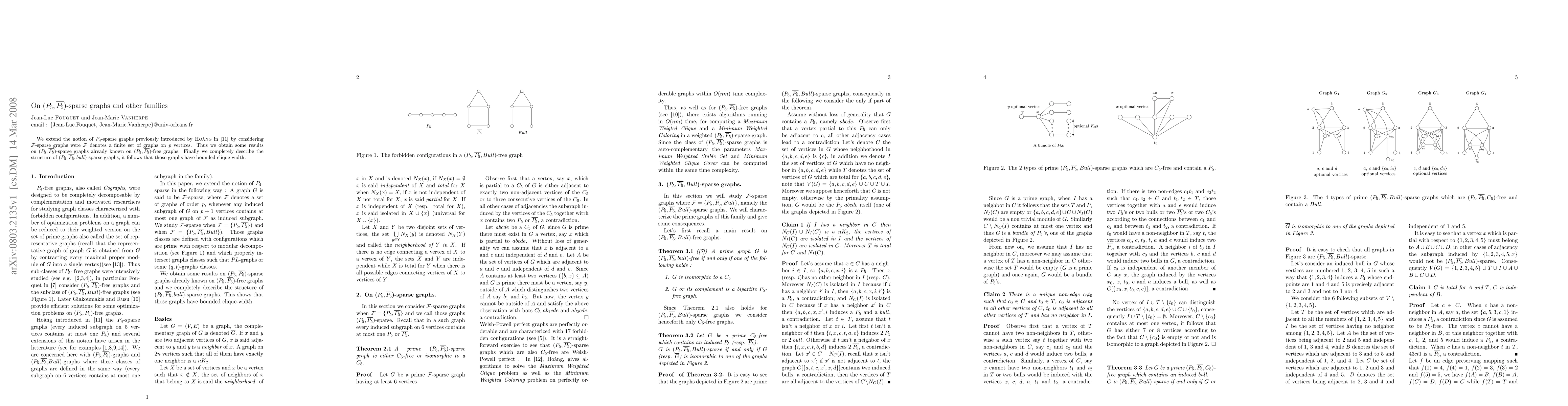 We extend the notion of $P_4$-sparse graphs previously introduced by {\scshape Ho\`ang} by considering $\mathcal{F}$-sparse graphs were $\mathcal{F}$ denotes a finite set of graphs on $p$ vertices. Thus we obtain some results on $(P_5,\bar{P_5})$-sparse graphs already known on $(P_5,\bar{P_5})$-free graphs. Finally we completely describe the structure of $(P_5,\bar{P_5}, bull$)-sparse graphs, it follows that those graphs have bounded clique-width.