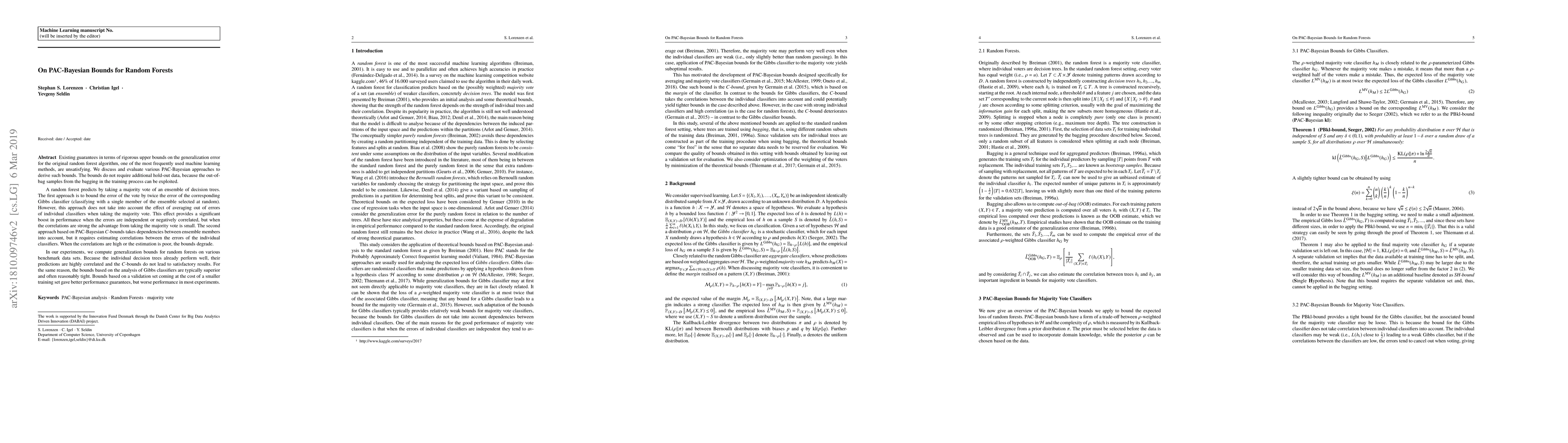 This paper evaluates PAC-Bayesian bounds for random forests, finding that while Gibbs classifier-based bounds are often tighter and more effective, they do not account for the ensemble's averaging benefits. The PAC-Bayesian C-bounds consider inter-classifier dependencies but struggle with high correlations and poor estimation.