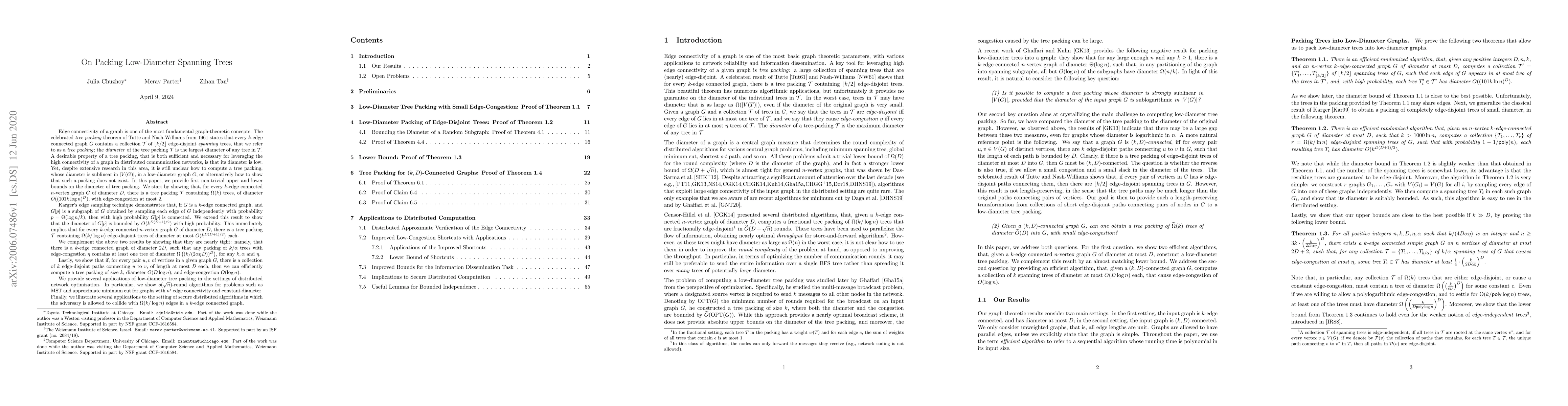 This work is novel in providing the first non-trivial bounds and constructions for tree packings with low-diameter in k-edge connected graphs, offering insights into the trade-offs between packing size, diameter, and edge congestion.