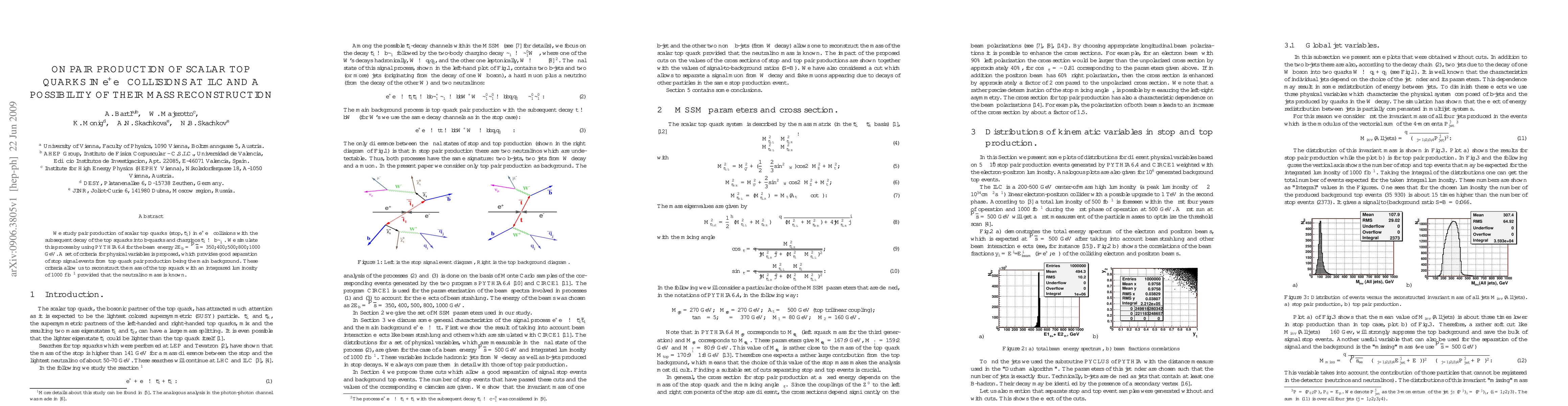 This paper investigates the pair production of scalar top quarks in e+e- collisions at the International Linear Collider (ILC) and proposes criteria for reconstructing their mass. Using PYTHIA6.4 simulations, it distinguishes stop signals from top quark pair production, enabling mass reconstruction with an integrated luminosity of 1000 1/fb, assuming known neutralino mass.