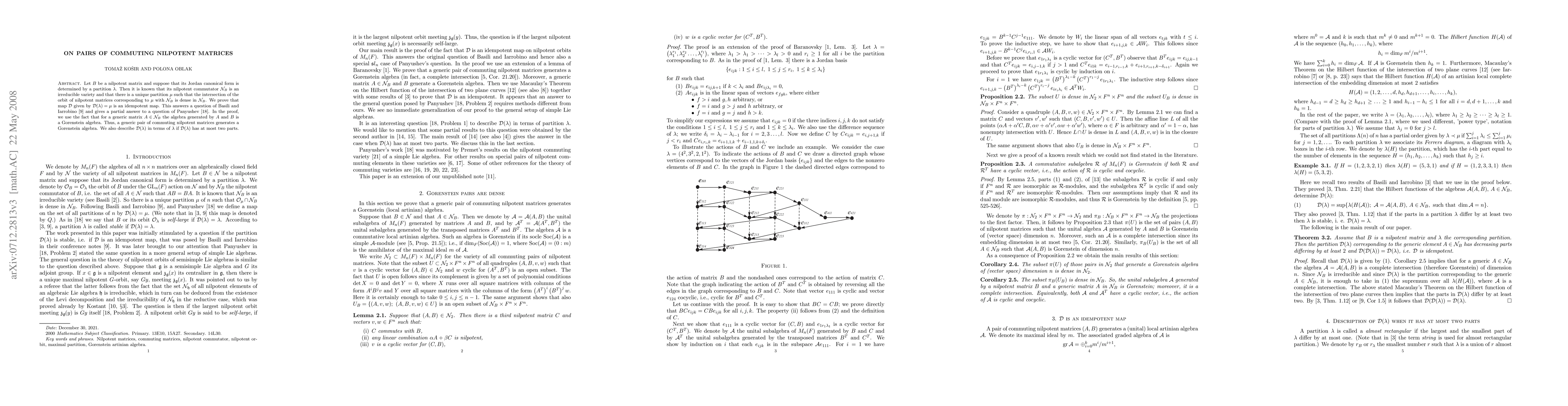 The paper proves that the map D, which associates a partition λ to another partition μ, is idempotent for nilpotent matrices. This is achieved by showing that a generic pair of commuting nilpotent matrices generates a Gorenstein algebra, using Macaulay's Theorem on the Hilbert function of the intersection of two plane curves.