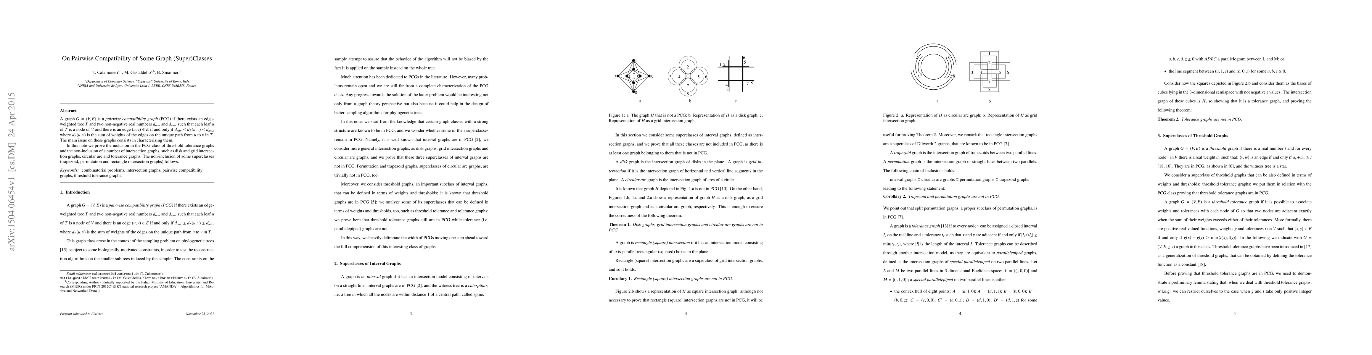 This paper explores the pairwise compatibility graph (PCG) class, proving that threshold tolerance graphs are included in this class while showing that several intersection graph types, such as disk, grid, circular arc, and tolerance graphs, are not. It also demonstrates the non-inclusion of broader superclasses like trapezoid, permutation, and rectangle intersection graphs.