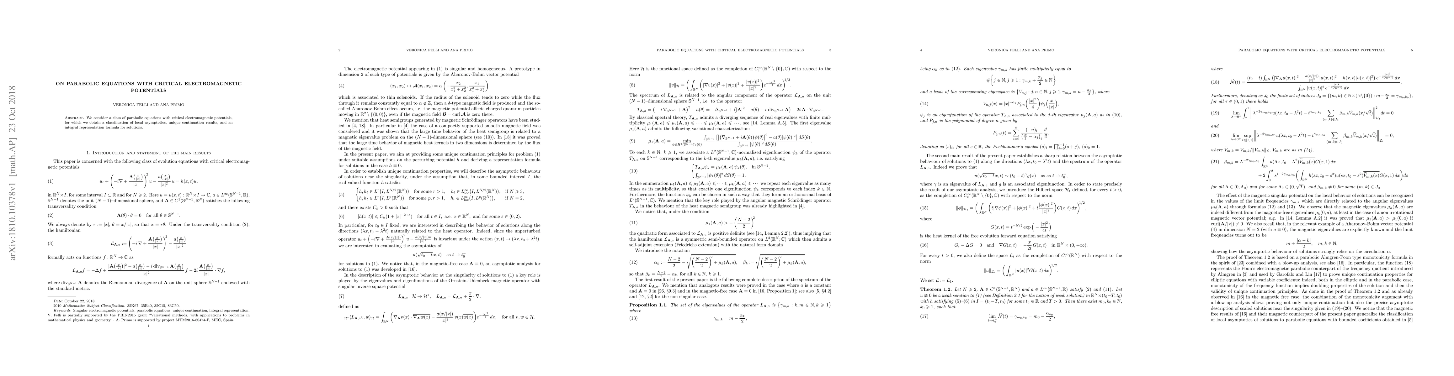 Researchers classified local asymptotics for parabolic equations with critical electromagnetic potentials, establishing unique continuation results and an integral representation formula for solutions.