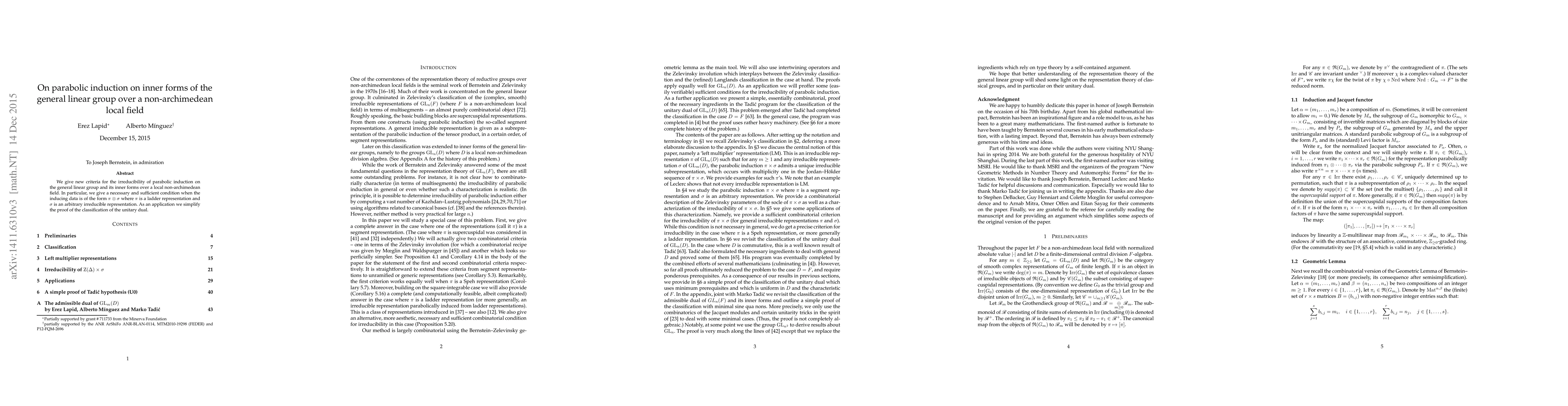 This paper presents new criteria for the irreducibility of parabolic induction in the general linear group and its inner forms over a non-archimedean local field, focusing on the case where inducing data consists of a ladder representation and an arbitrary irreducible representation. It also simplifies the classification of the unitary dual.