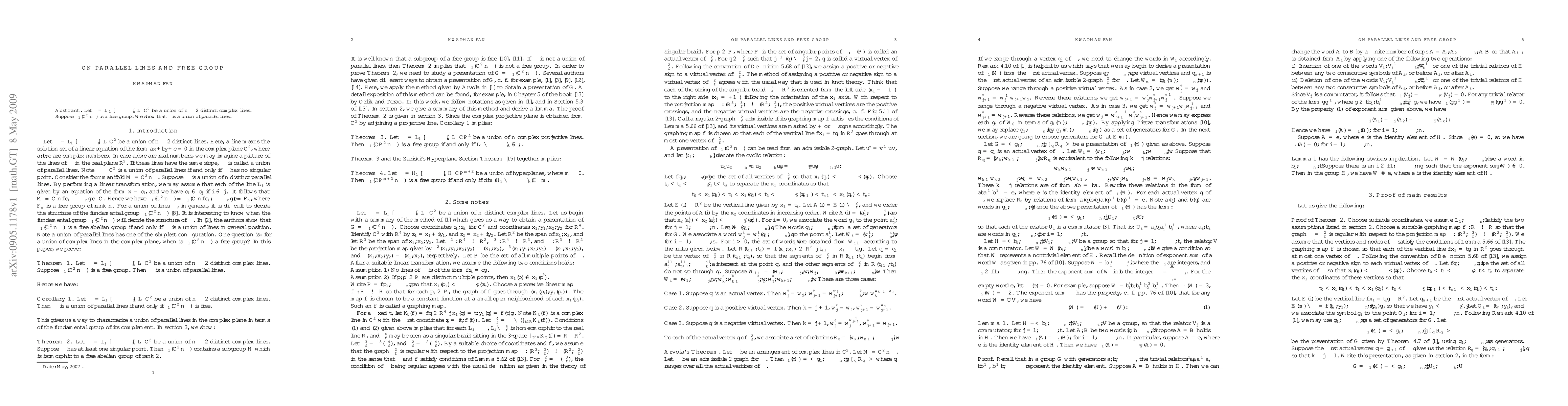 The fundamental group of a space is free if it is the union of parallel lines in the complex plane. This result generalizes previous findings on arrangements of complex lines.