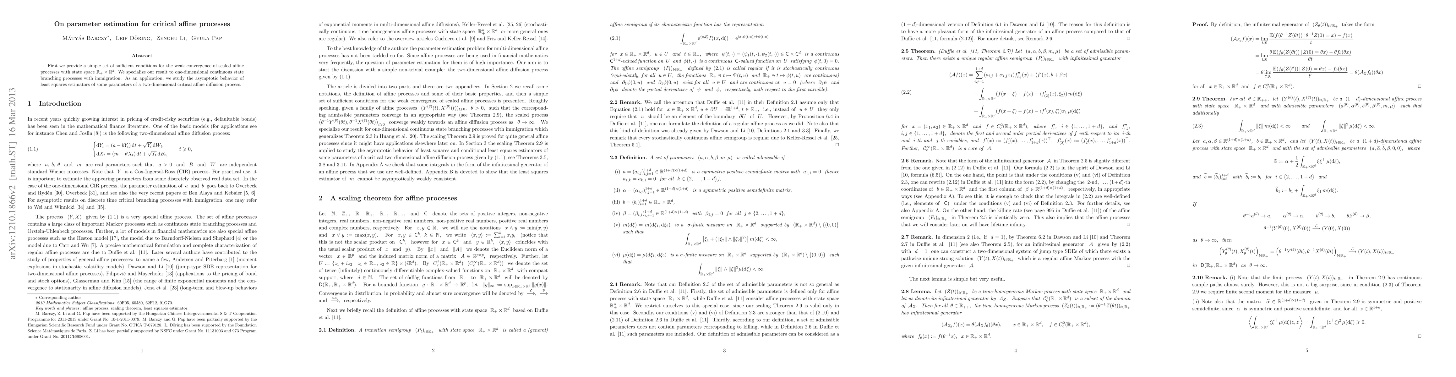 Researchers established conditions for weak convergence of scaled affine processes and applied this to a two-dimensional critical diffusion process, finding the asymptotic behavior of least squares estimators.